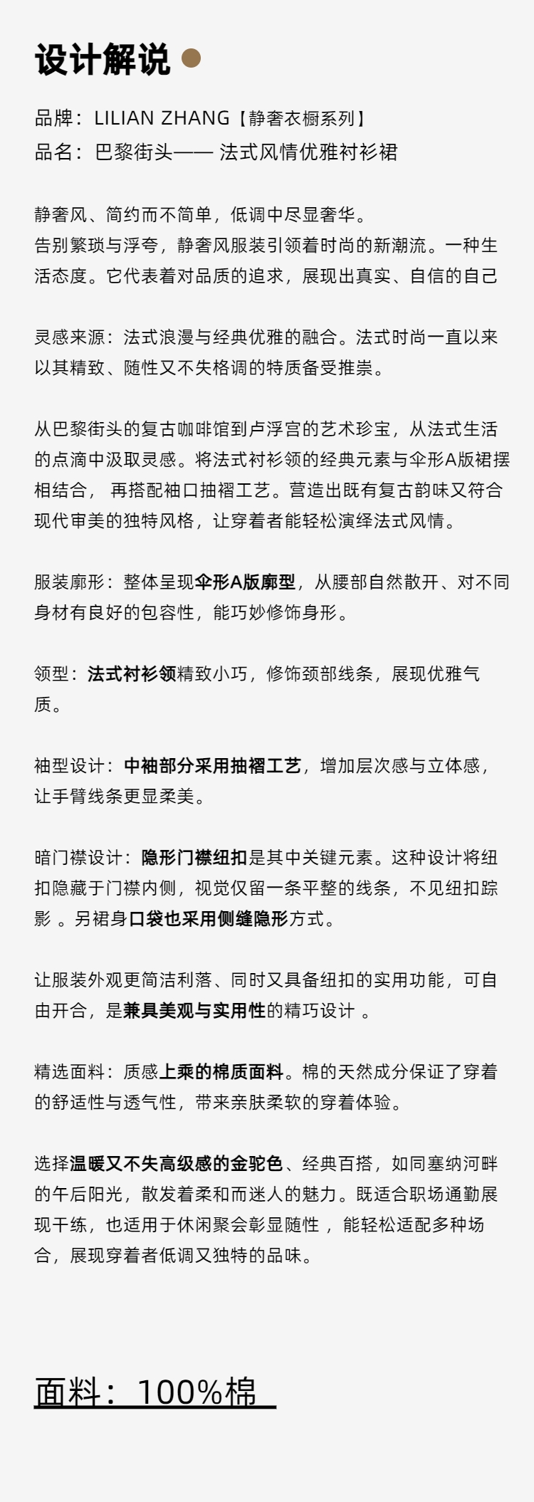 E“定制”——静奢风———巴黎街头—— 法式风情优雅文艺衬衫裙 2501066