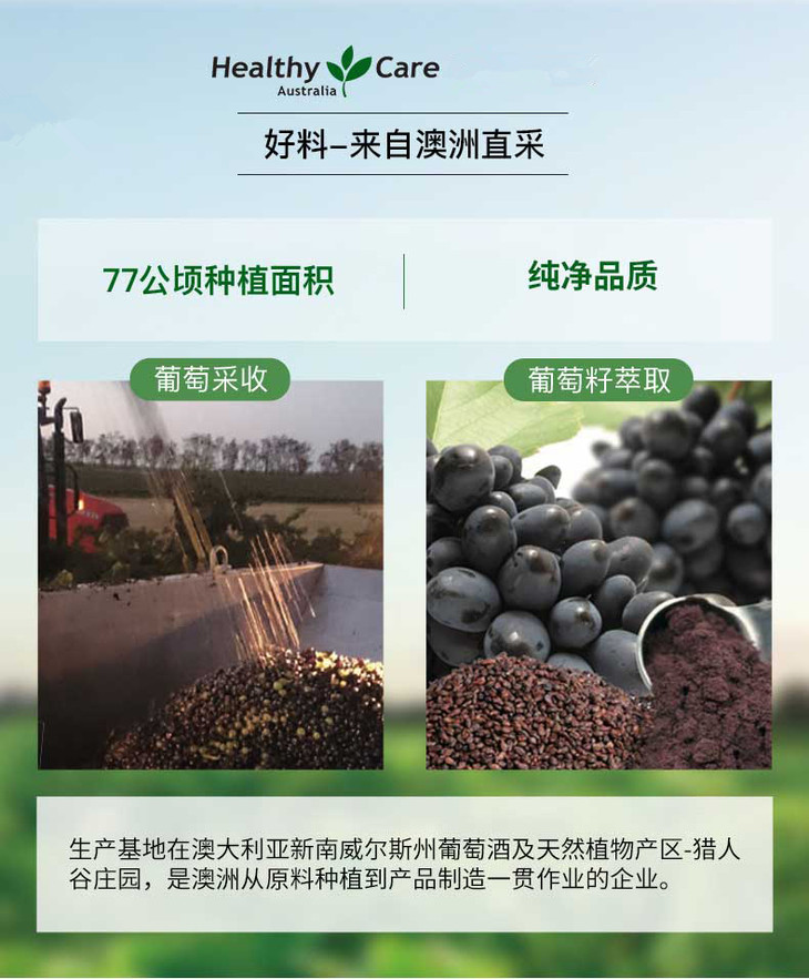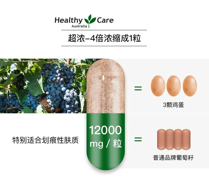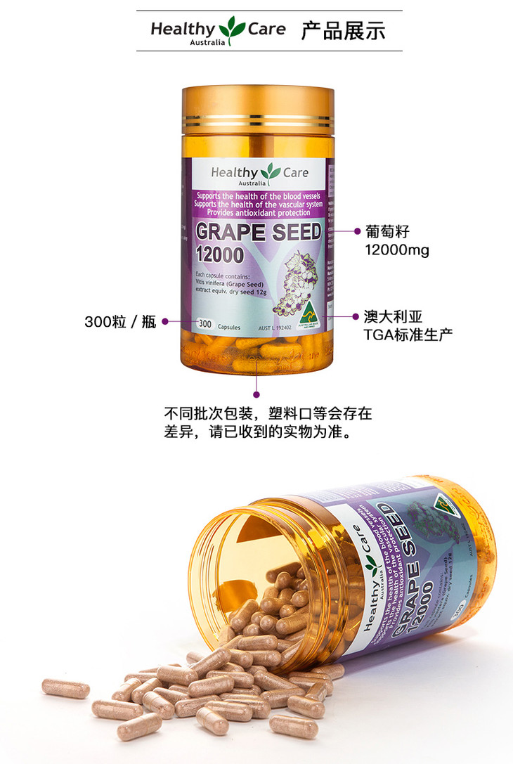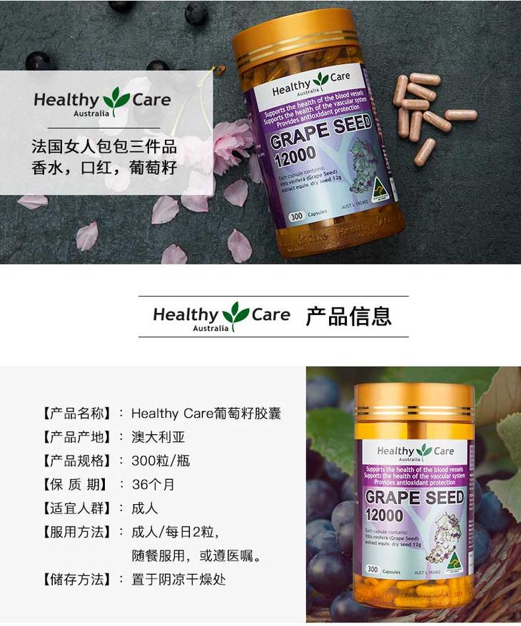 【保税区包邮直发】澳洲 HealthyCare 葡萄籽胶囊12000mg 300粒
