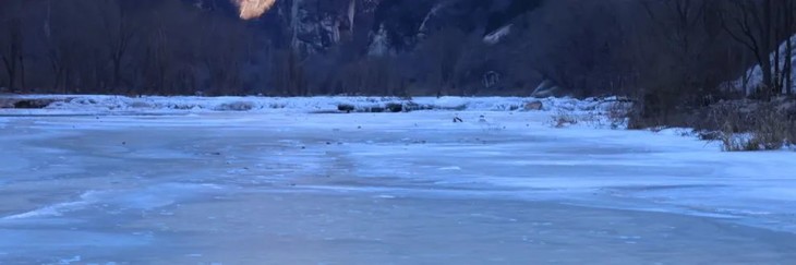 而当河流冻结成蓝色的舞台,雪花装点了冰面