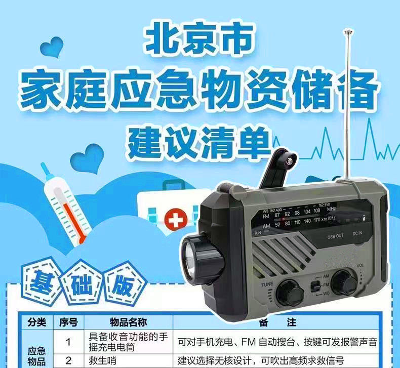 日本手摇式手电筒收音机充电多功能充电宝太阳能发电式应急装备灯