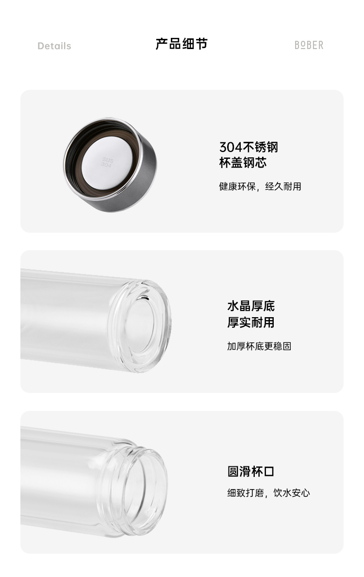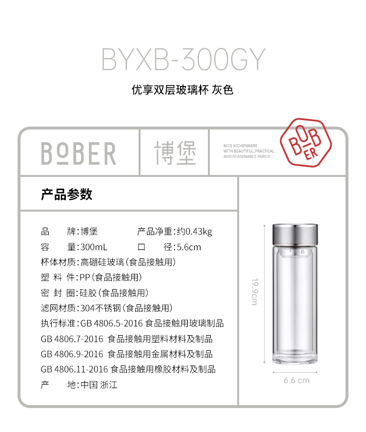 博堡 优享双层玻璃杯BYXB-300GY 300ml