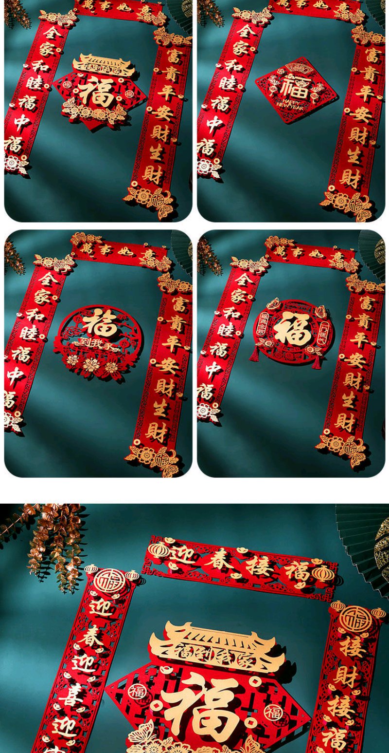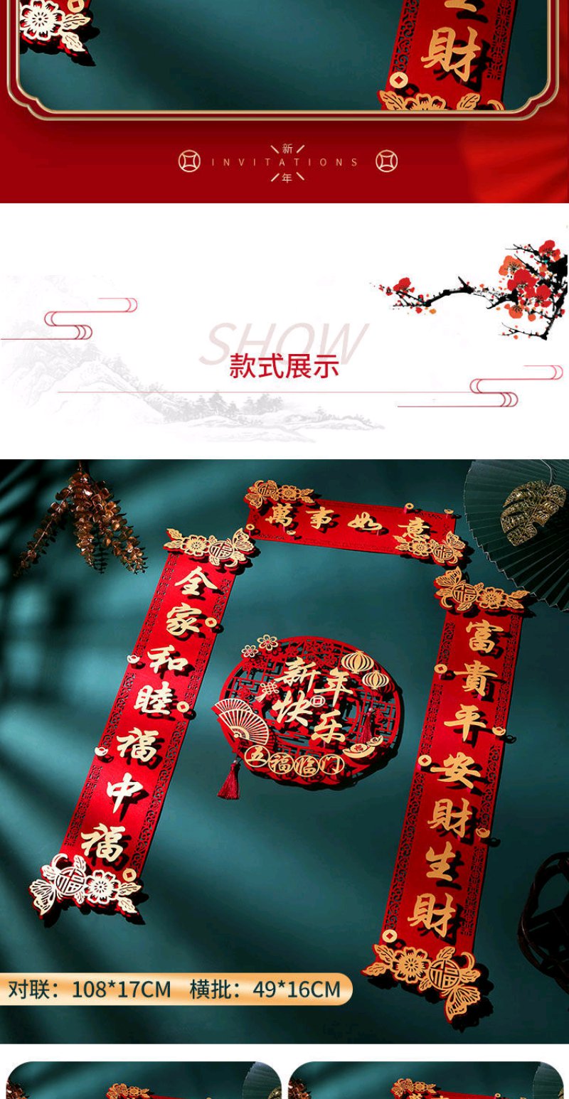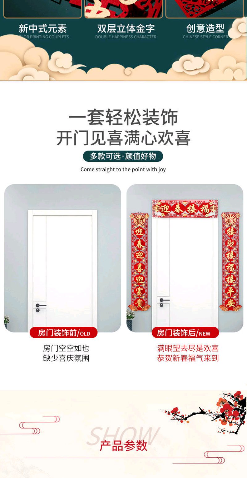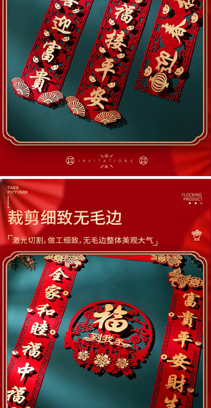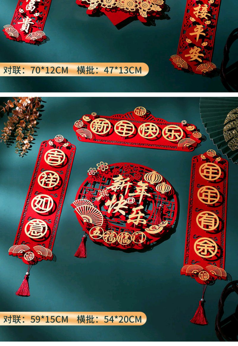 虎年对联春节家用绒布过年门福字立体装饰春联布置高档门帘套装