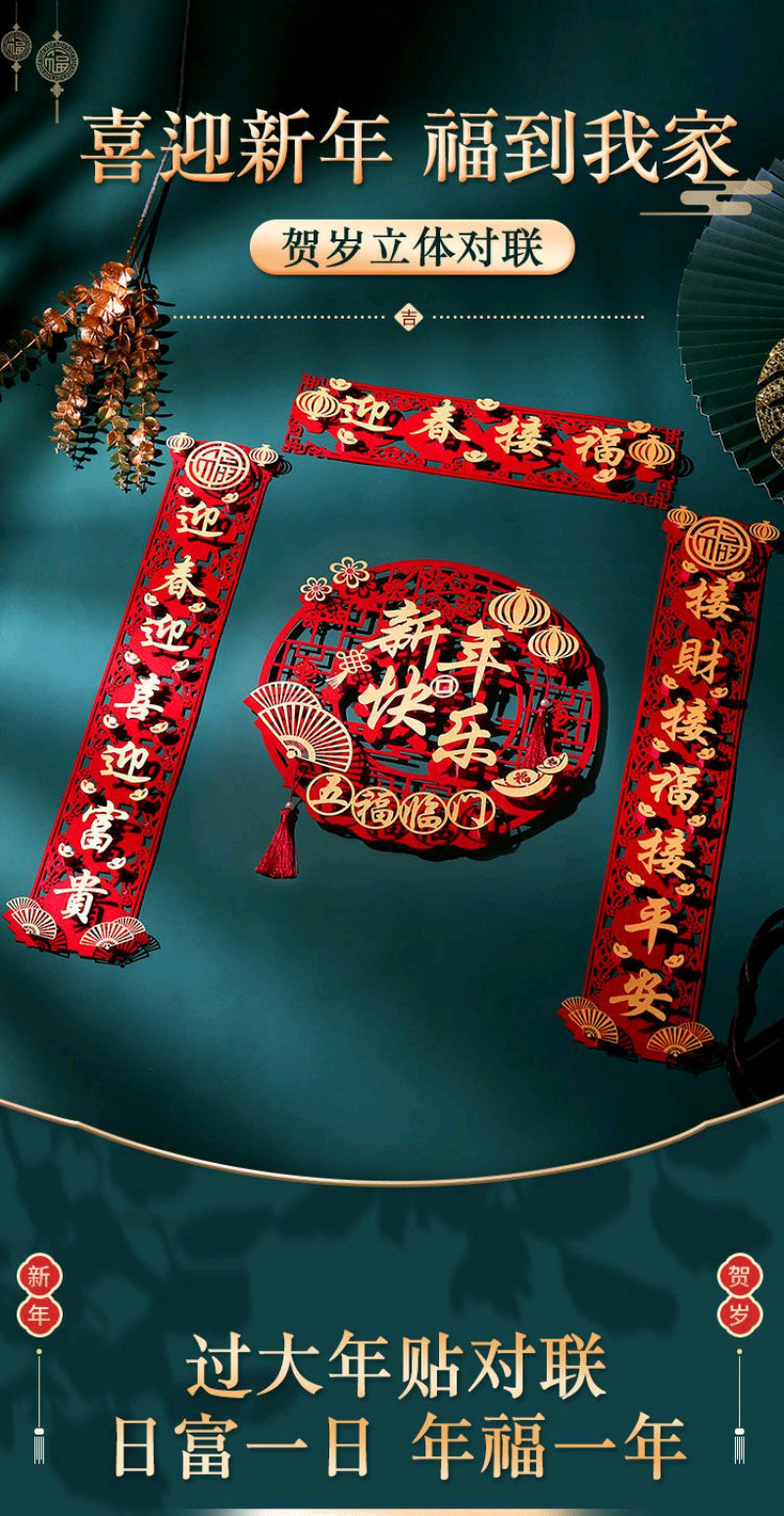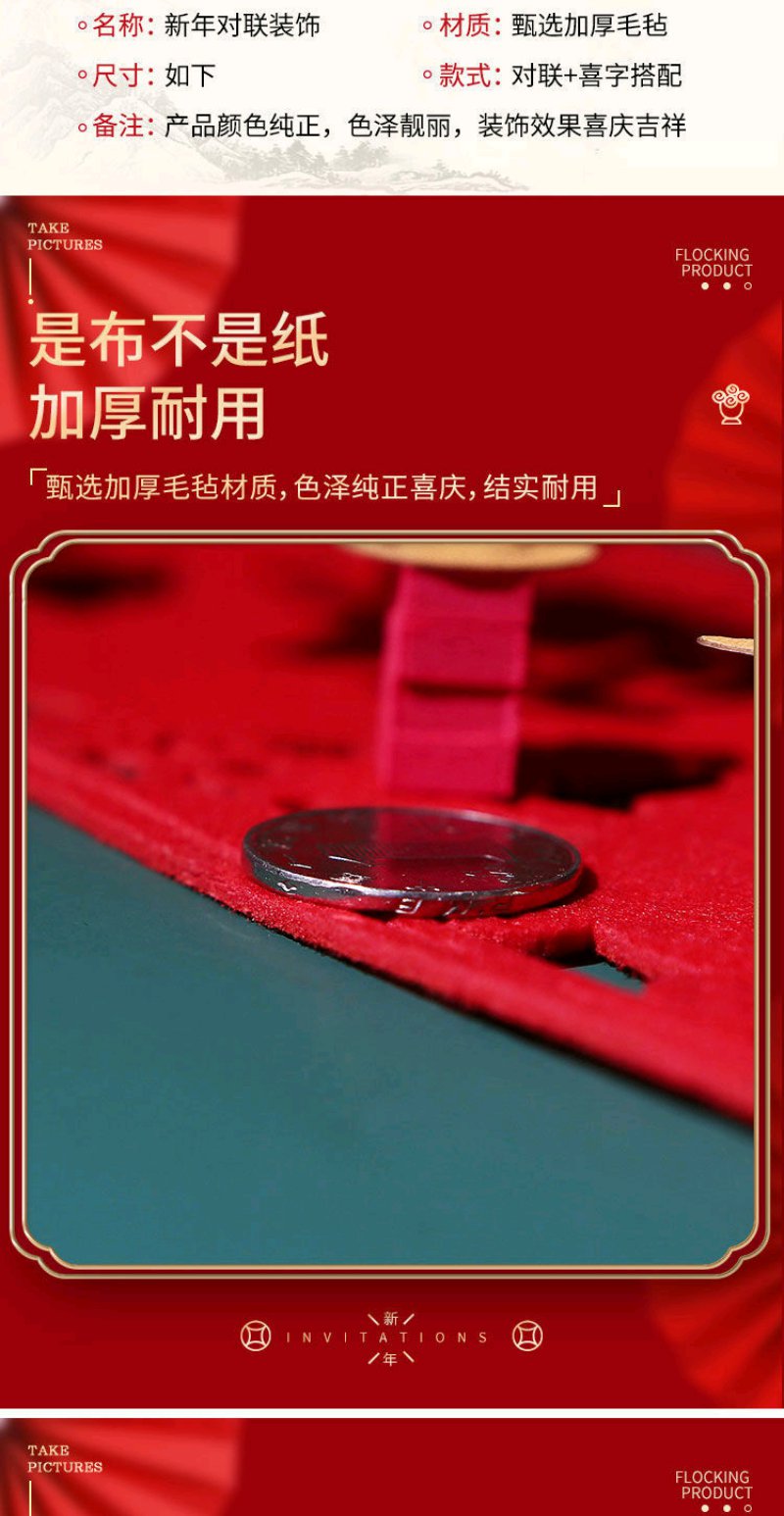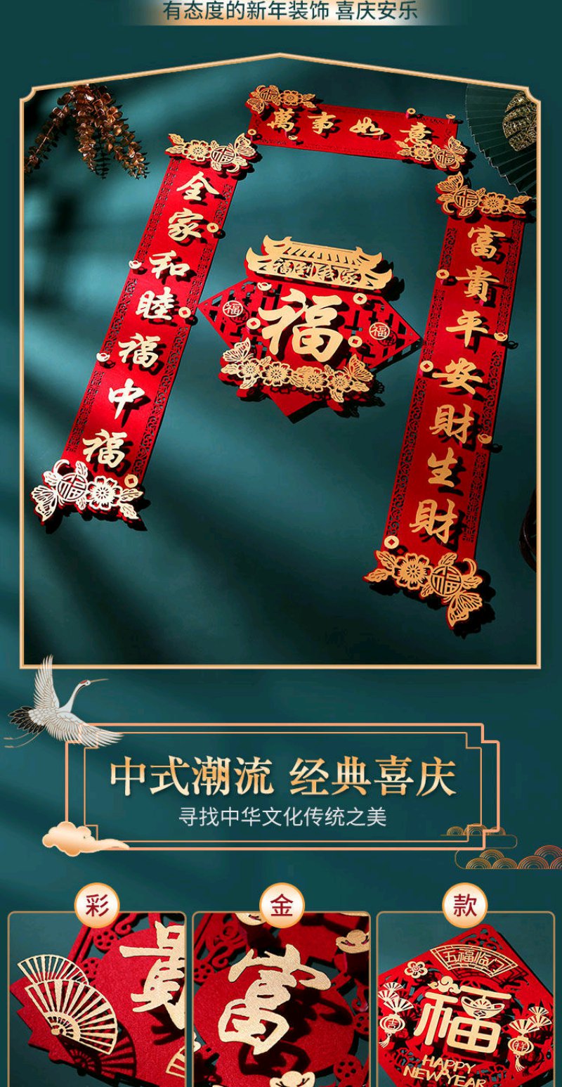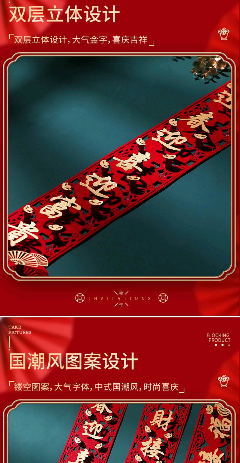 虎年对联春节家用绒布过年门福字立体装饰春联布置高档门帘套装