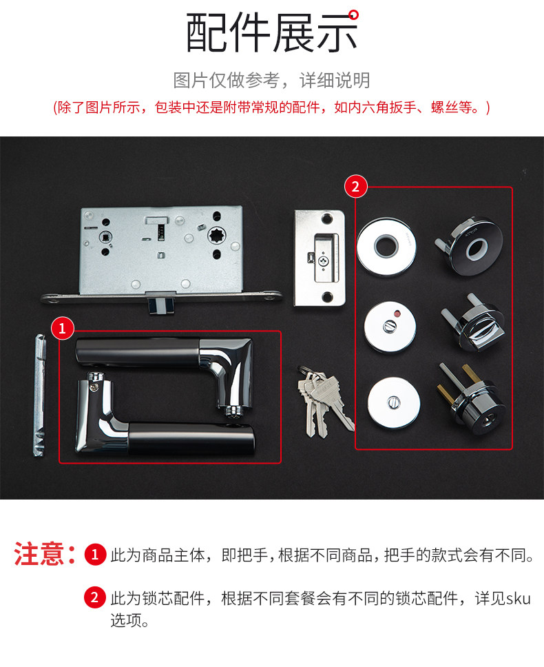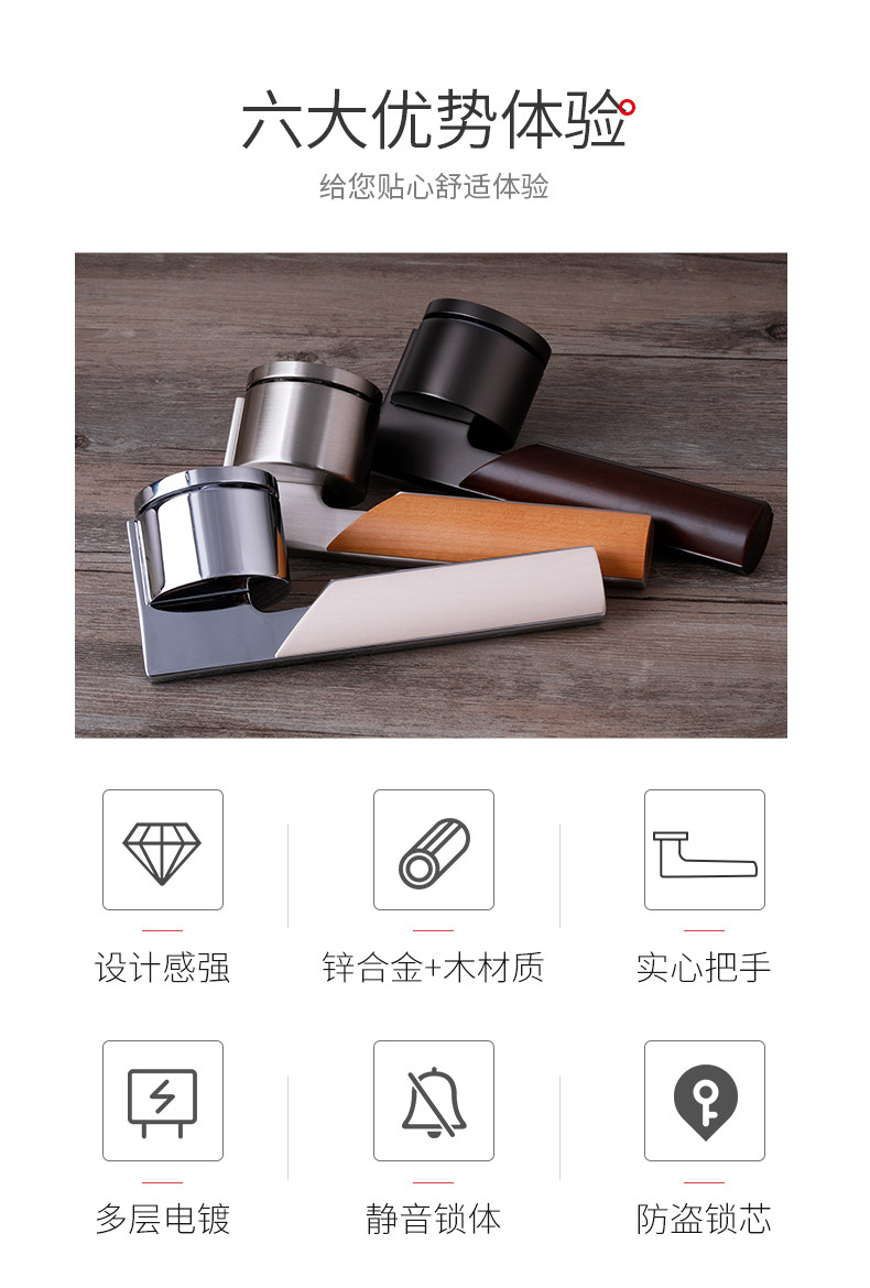 KAWAJUN静音门锁家用通用型把手门锁室内卧室房门锌合金套装门锁