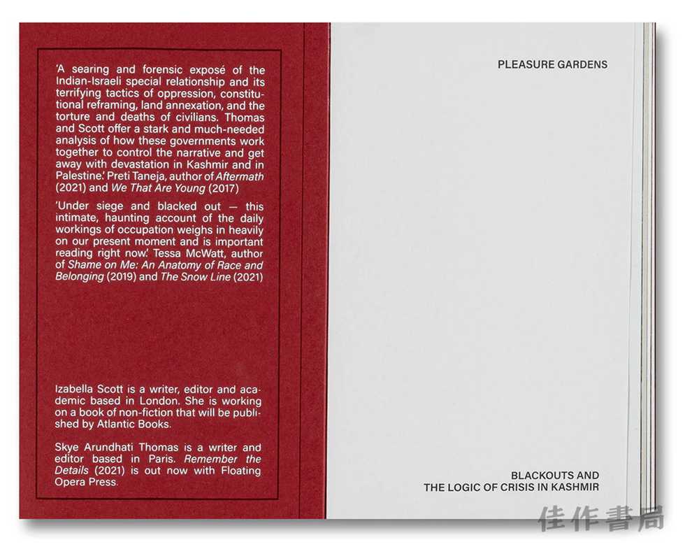 In the book’s first part, Scott and Thomas bring together hundreds of sources, filling in the gaps from Srinagar to the remote Himalayan valleys along the Line of Control between India and Pakistan, to create a unique log of fifteen days under siege, during which Kashmiri constitutional rights were revoked, the state partitioned, and stripped of its special statehood. In the second part, the authors examine Kashmir’s occupied territories and the complex ways in which India’s infrastructure of surveillance and occupation is borrowed from Israel’s occupation of Palestine.