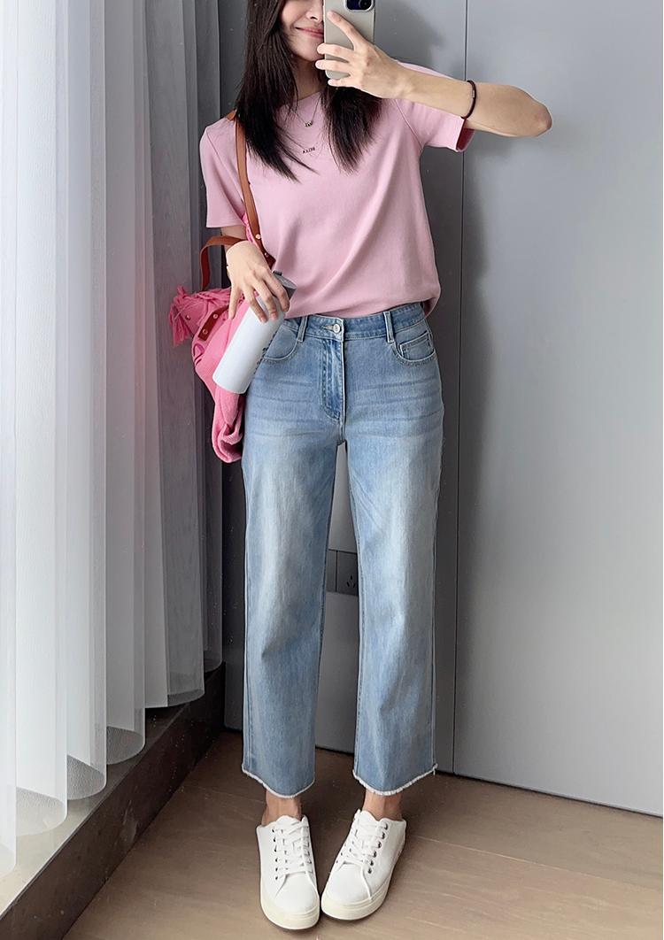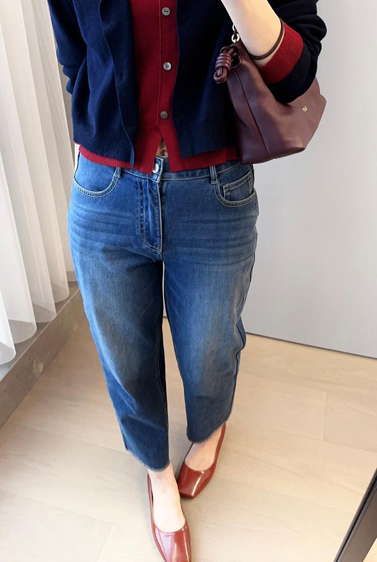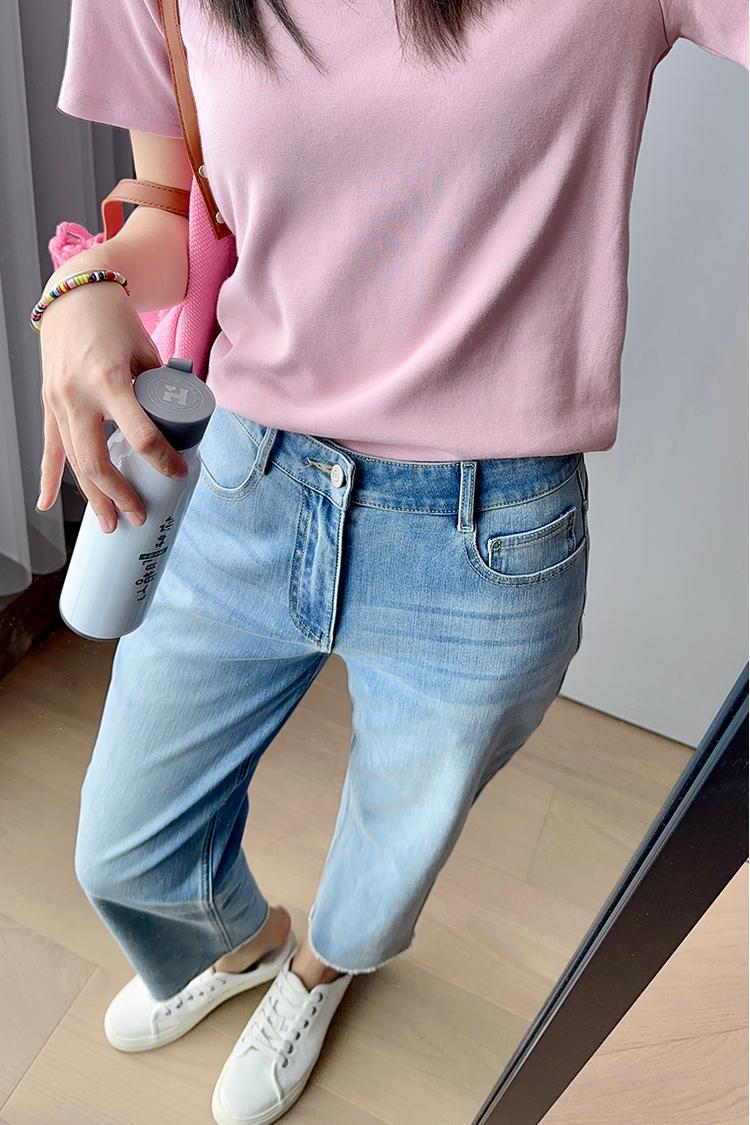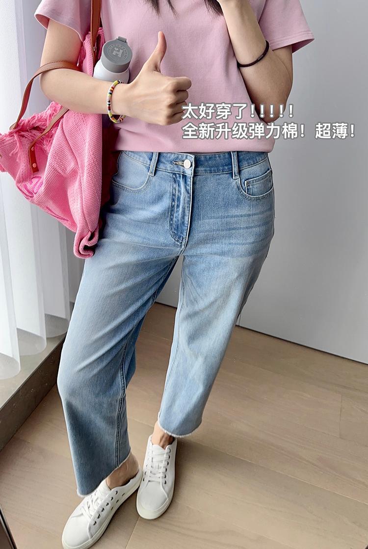 9分裤长轻盈高挑,脚口毛边设计灵动