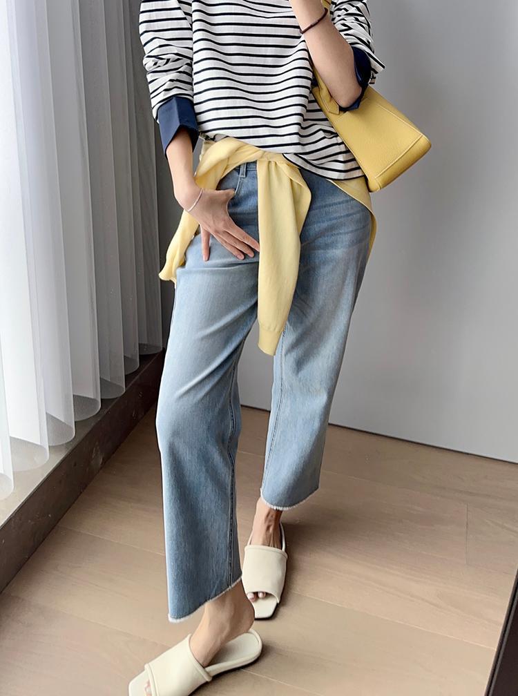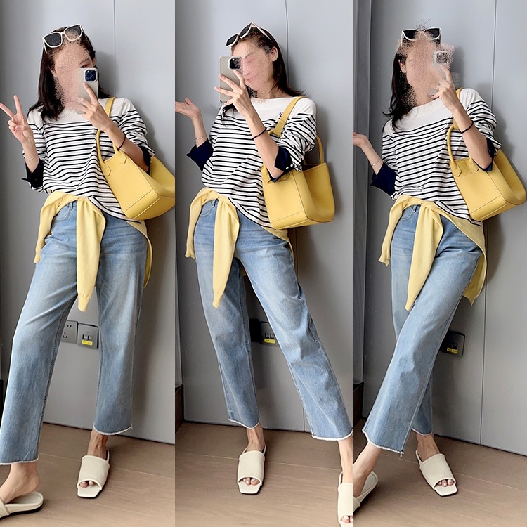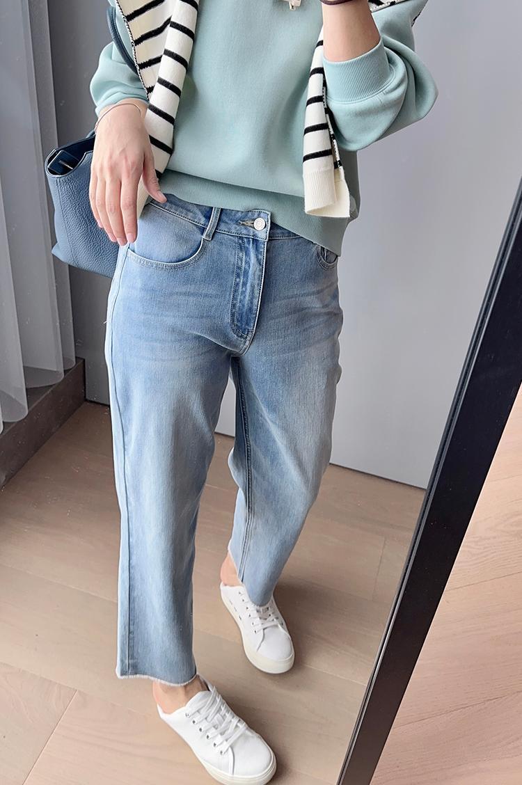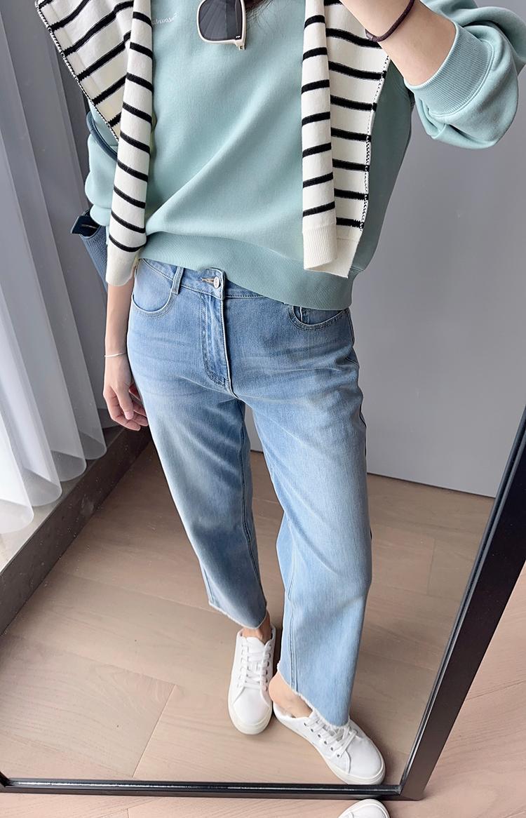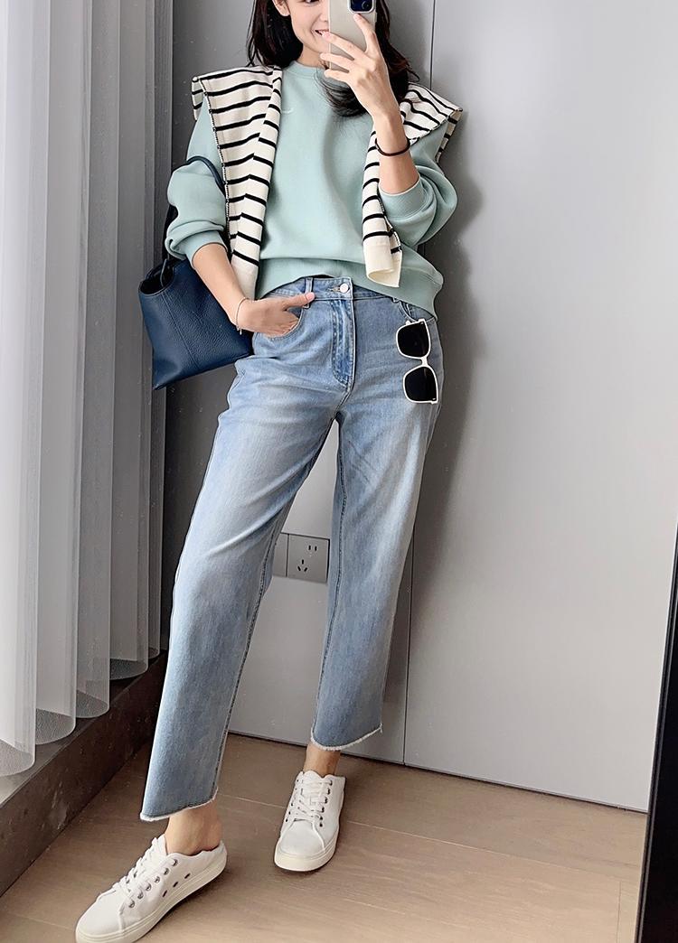 9分裤长轻盈高挑,脚口毛边设计灵动