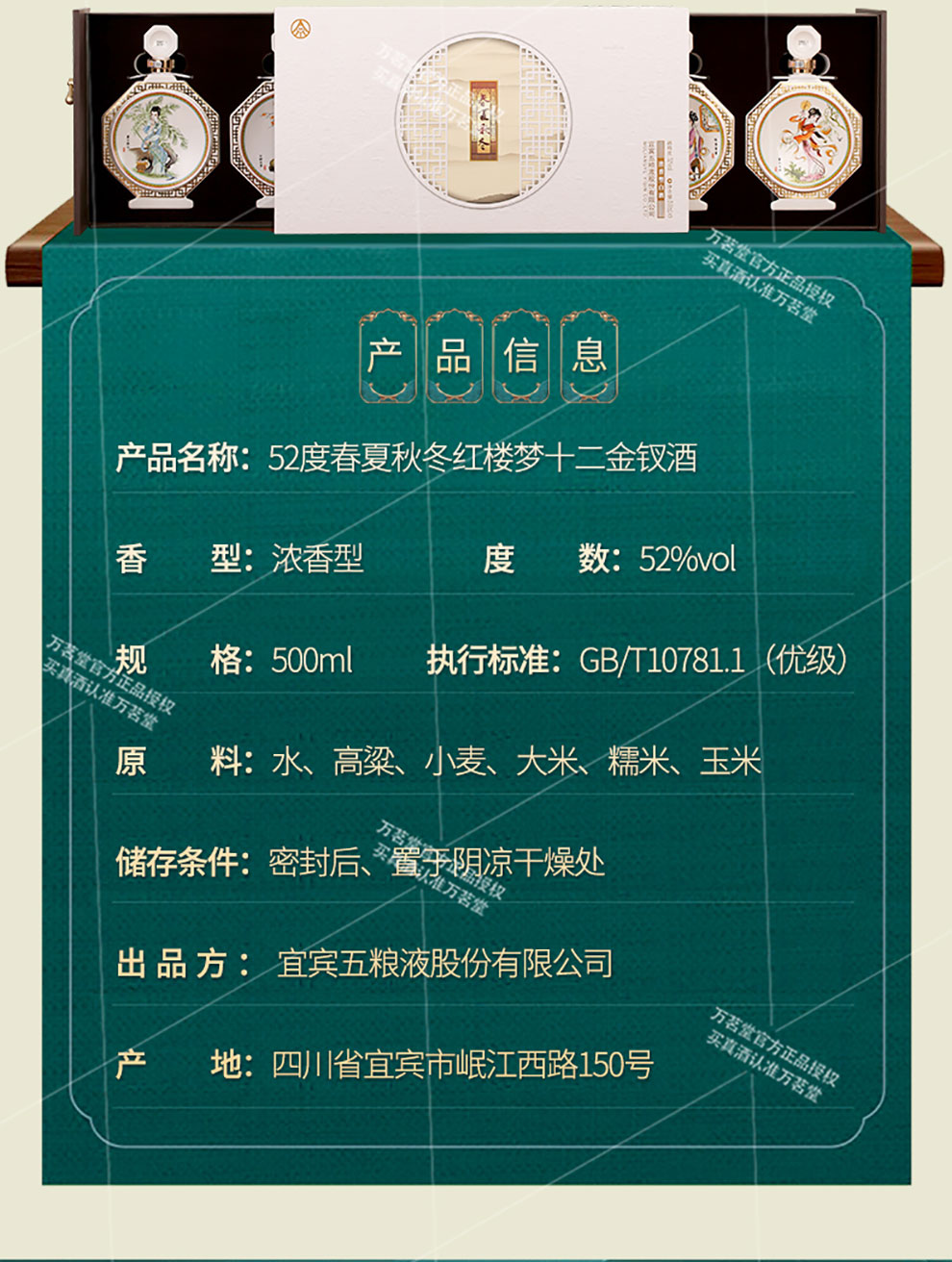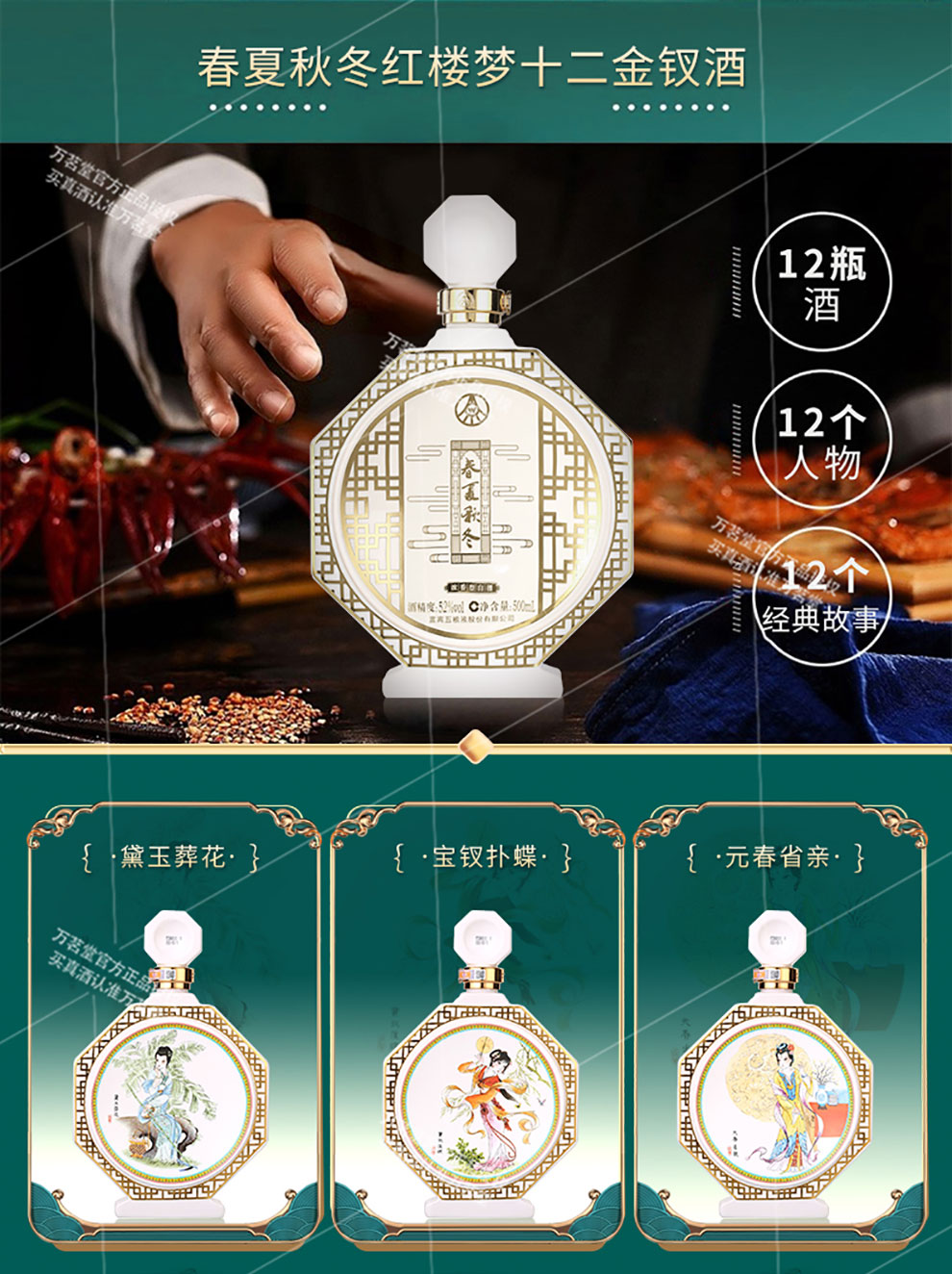 春夏秋冬十二金钗酒 52度浓香型白酒(500ml*12瓶装)高端文创酒