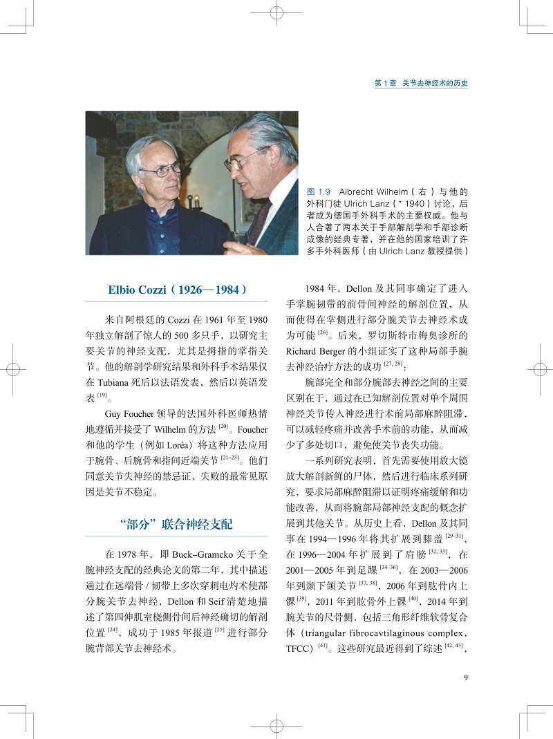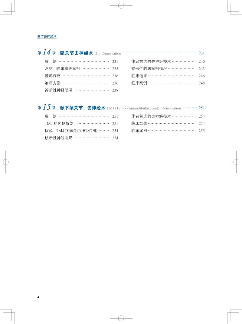 书中配有大量的解剖和手术图片,图文并茂,对于有兴趣开展此类手术的医师来说非常有帮助,特别是对于骨科、疼痛科、康复科、整形外科、风湿科、口腔科及神经内科等从事疼痛相关治疗的医师,本书是一份很好的参考资料。A. Lee Dellon 教授提出的部分关节去神经的治疗理念是目前世界上非常先进的关节疼痛治疗理念,对于提高我国的关节相关疼痛治疗水平有着很好的参考价值。关节相关的疼痛是目前骨科临床上*常见的疼痛,也是*常见的门诊和住院患者需要解决的问题。本书由世界周围神经领域的权威、美国约翰斯·霍普金斯大学的 A. Lee Dellon 教授编写,描述了四肢各关节及颞下颌关节的去神经术的历史、手术技巧、疗效及注意事项。本书是目前世界上该领域*权威,也是*为完整和详细地描述关节去神经技术的图书。