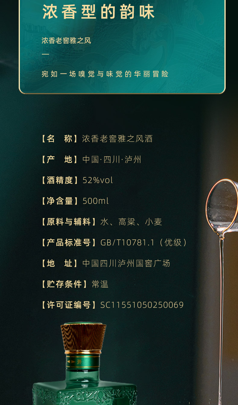 【酒厂直营】52度 浓香老窖雅之风酒 500ml*6 泸州老窖官方旗舰店