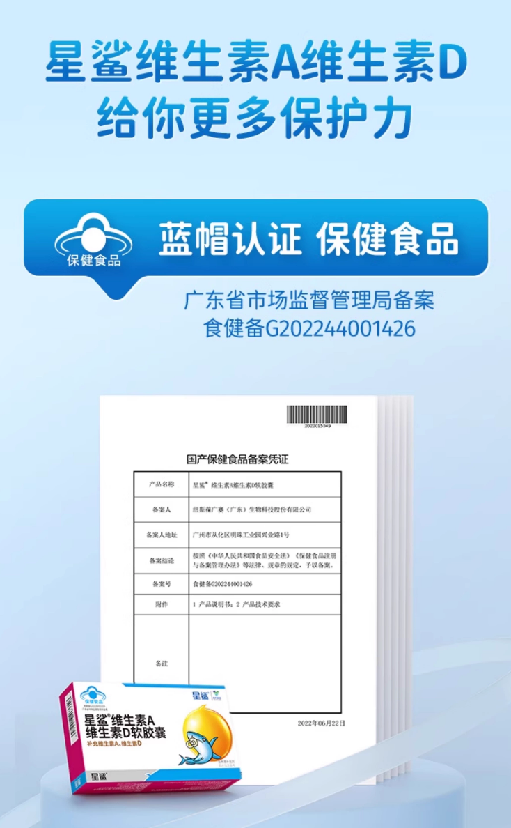 【10盒装】星鲨维生素A维生素D儿童非滴剂维生素ad新生婴儿一岁以上软胶囊10粒装