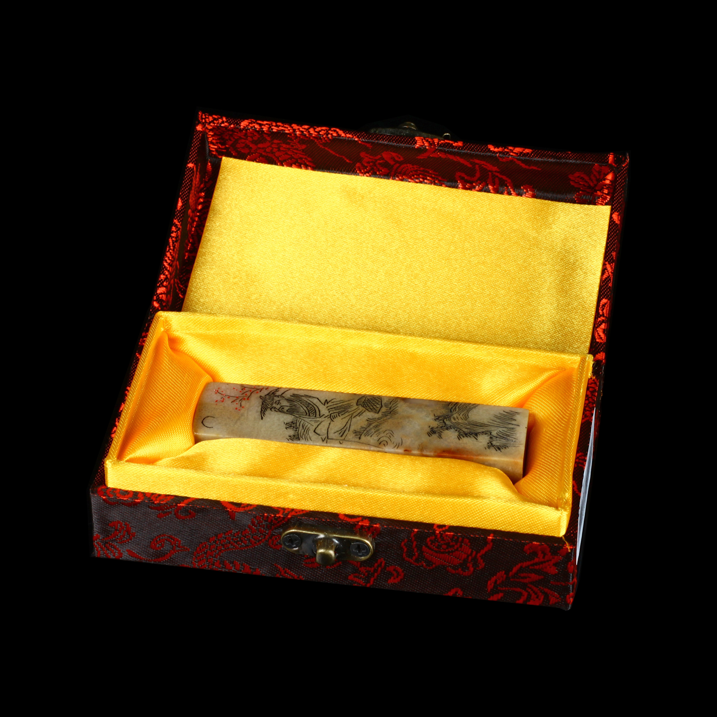 孤品17722昌化石线刻山水人物素章方章落款章斋馆章-2.0*2.0*8.3cm