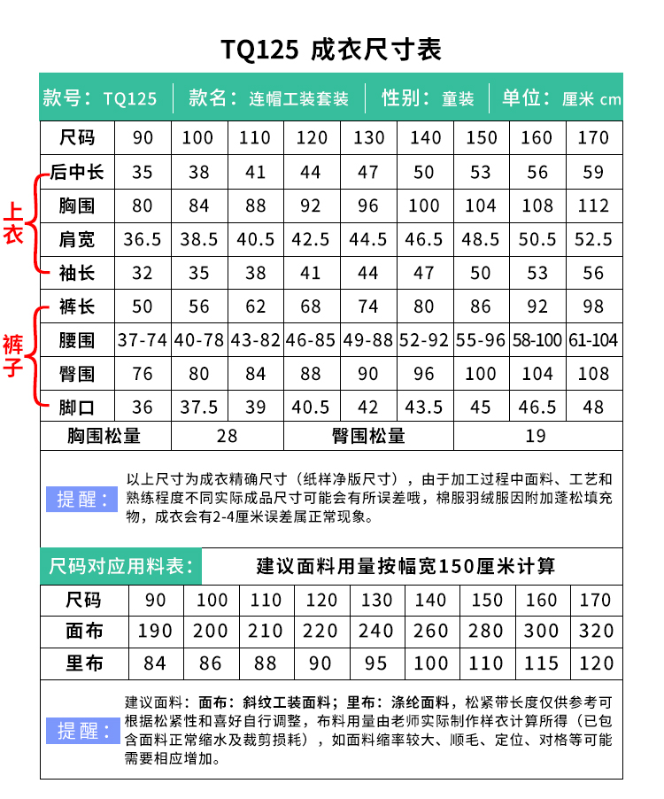 裁缝学苑TQ125儿童新款连帽工装外套纸样休闲裤子套装童装样板
