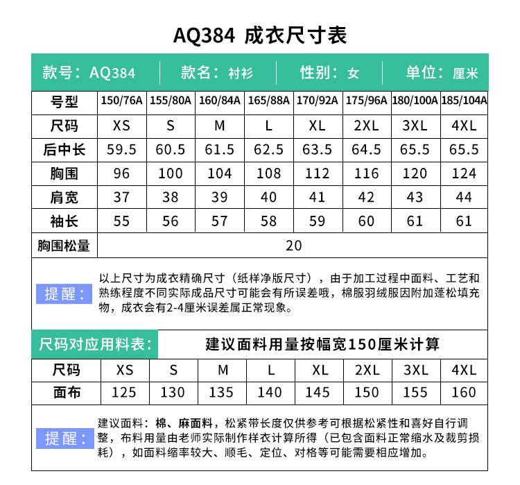 裁缝学苑AQ384长袖亚麻衬衫纸样女装春季新款衬衣上衣服装样板