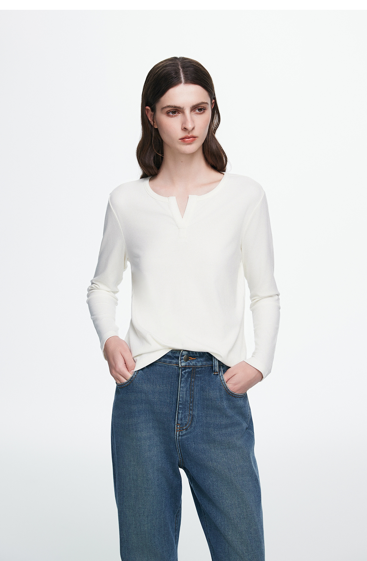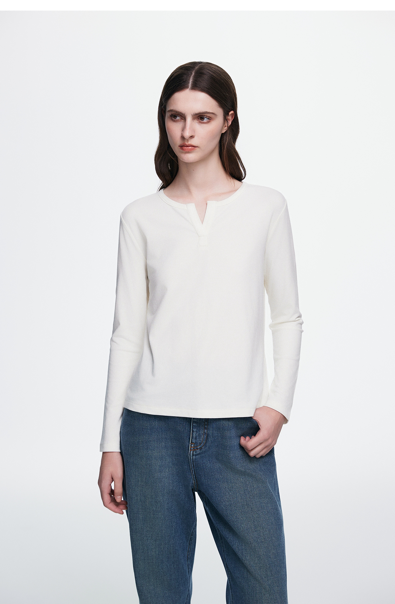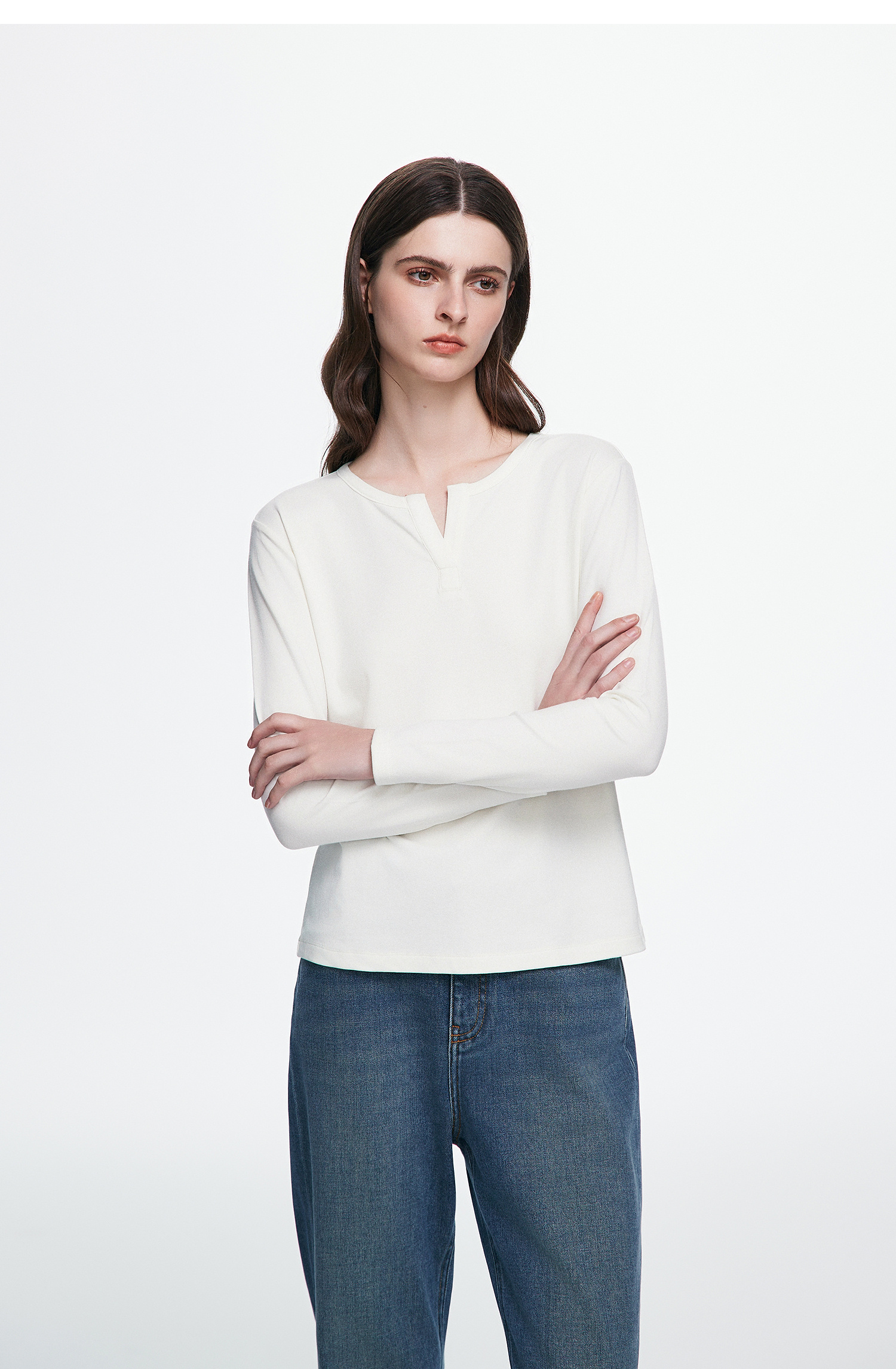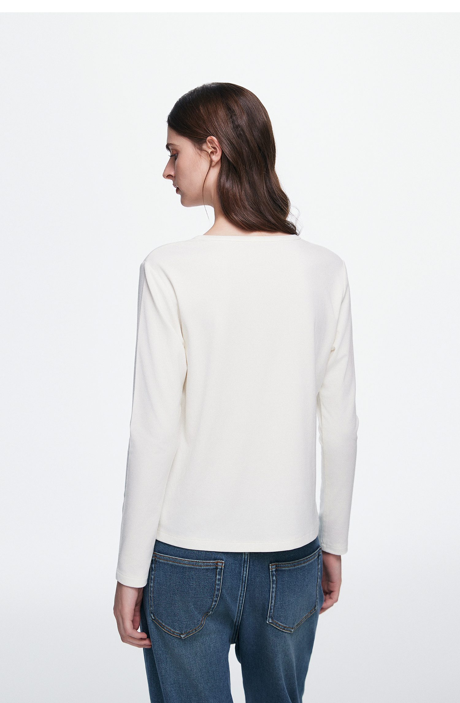 棉仓346601017-蓄热保暖长袖T恤女半高领 冬季美雅碧白色打底衫厚润内搭体恤