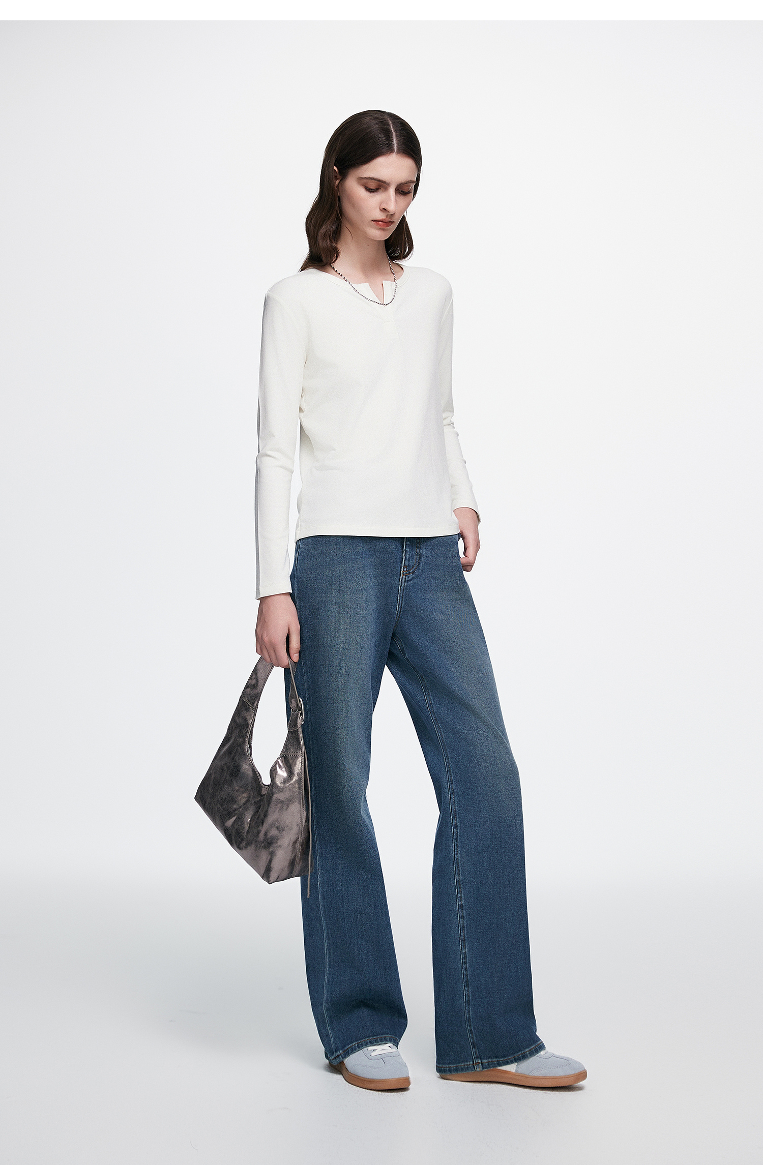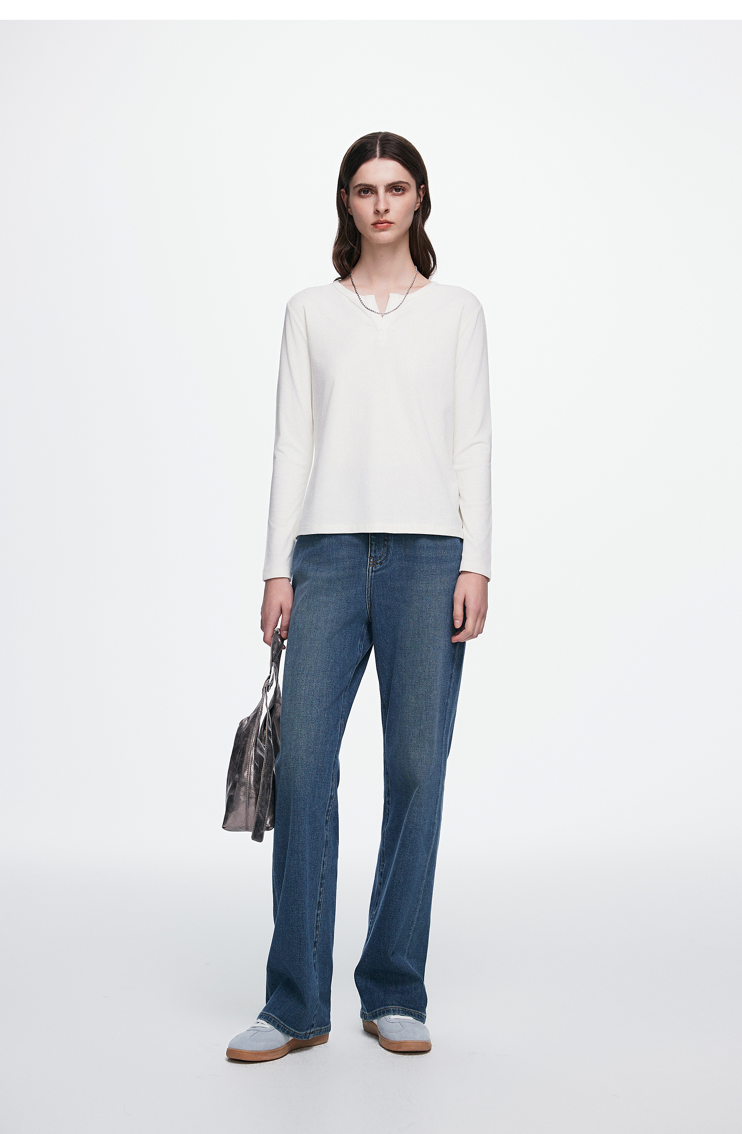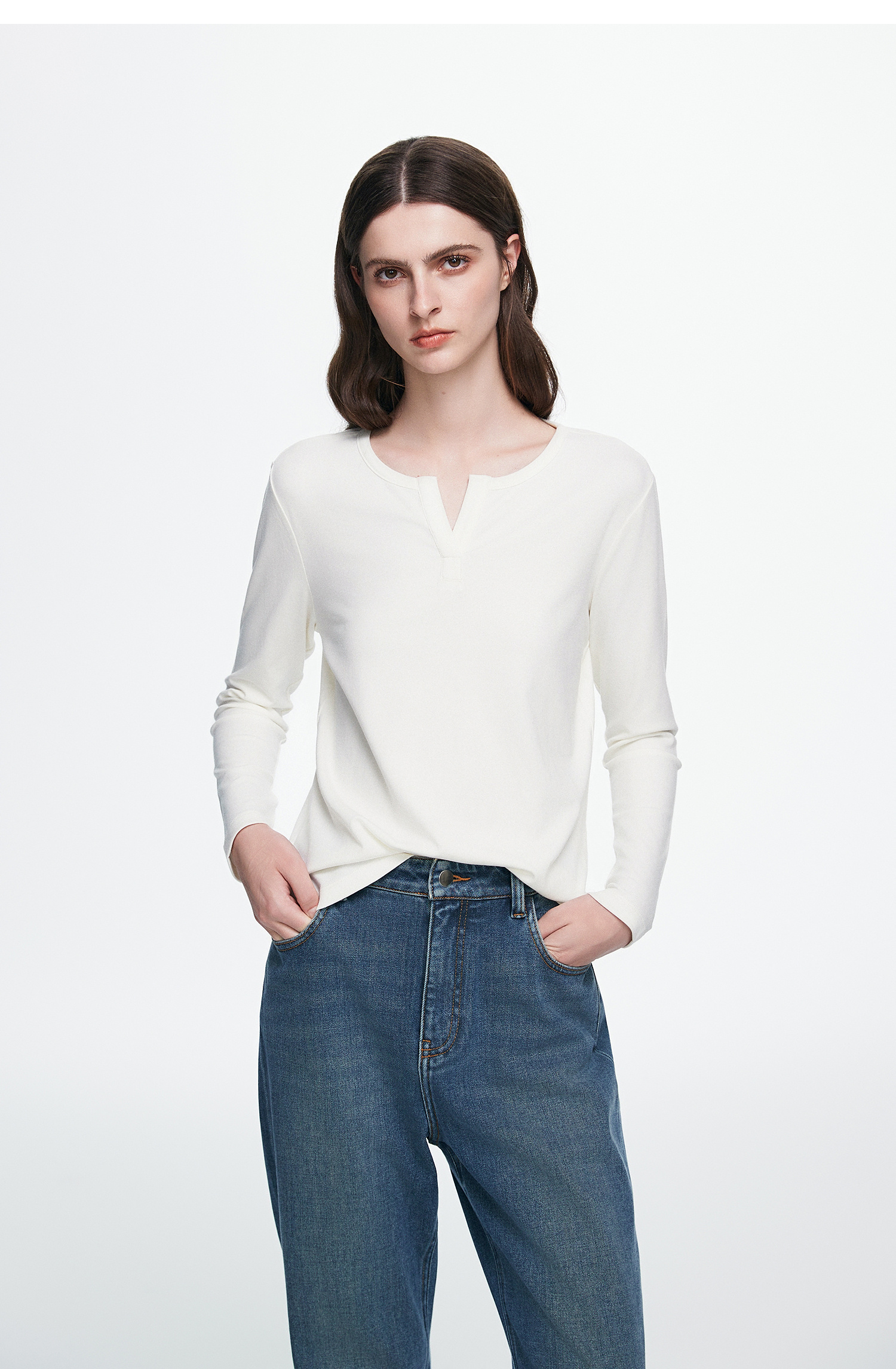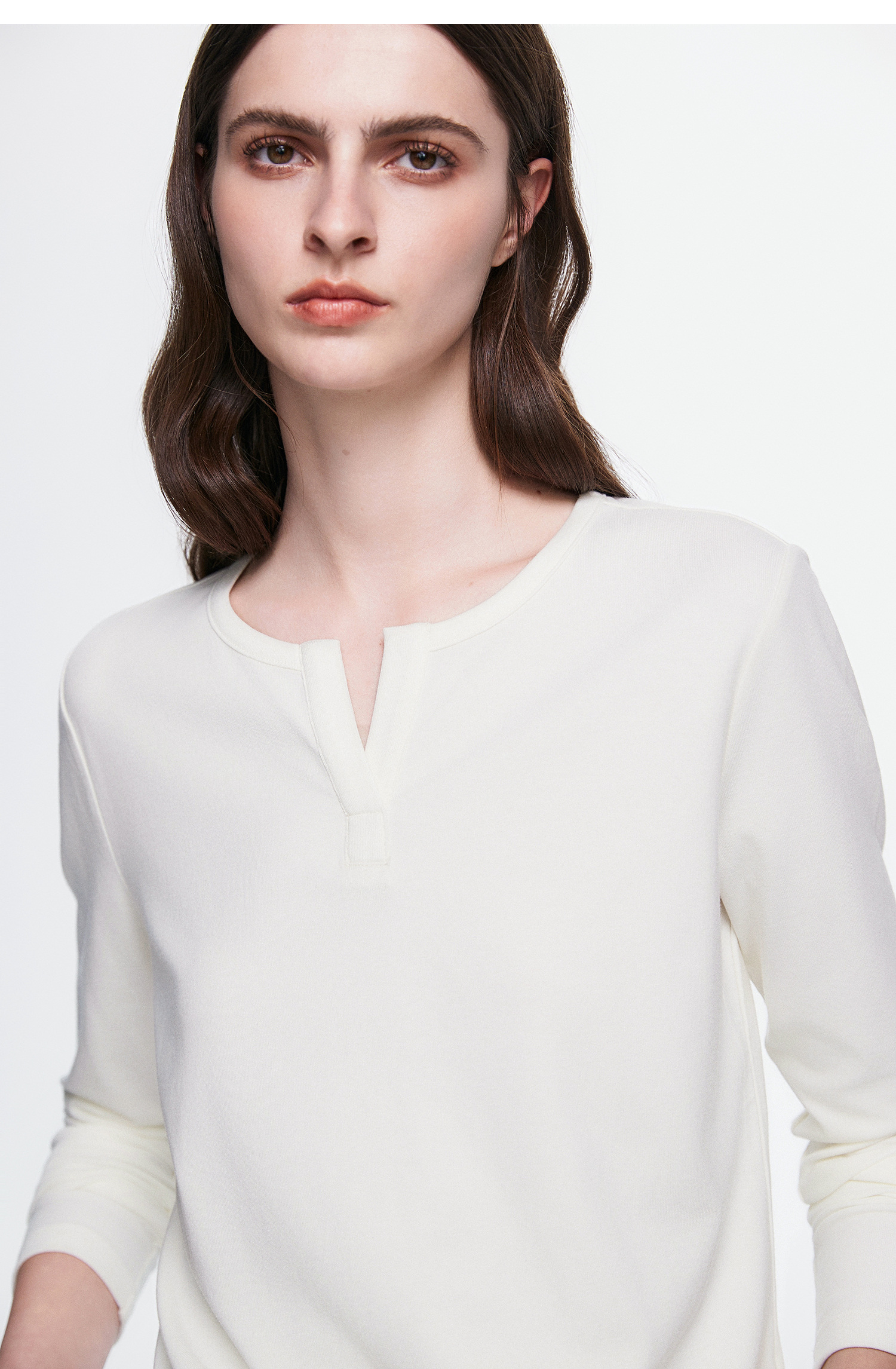 棉仓346601017-蓄热保暖长袖T恤女半高领 冬季美雅碧白色打底衫厚润内搭体恤