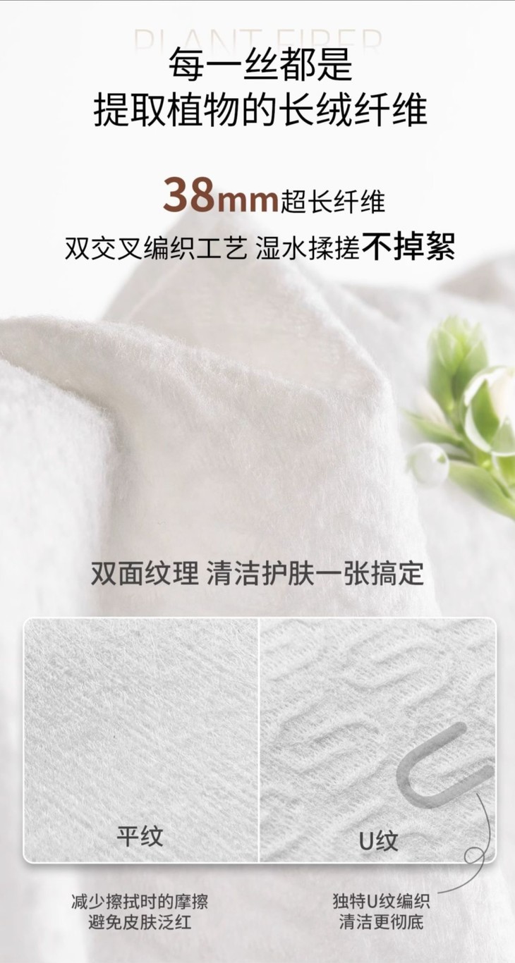 洗脸巾的正面是U纹清洁,柔软舒适,但很温和,反面是平纹亲肤,韧滑细腻,敏感肌适用。特别的3D立体编织,更贴近毛巾圈设计,舒适耐用,吸水性也很强,速度比一般洗脸巾快2.5倍,吸水量多1.64倍,瞬吸快干,拉力强度也有高4~6倍,再怎么扯也不容易坏!