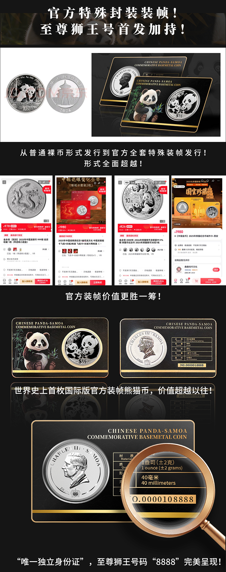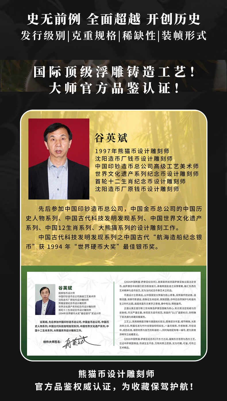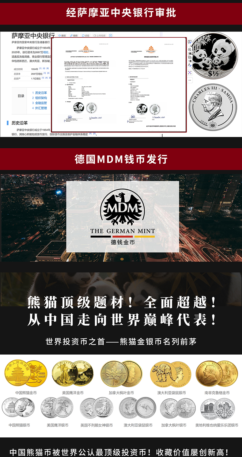 热卖中!!【首枚法定面值国际版熊猫币】2026中国熊猫 - 萨摩亚纪念币