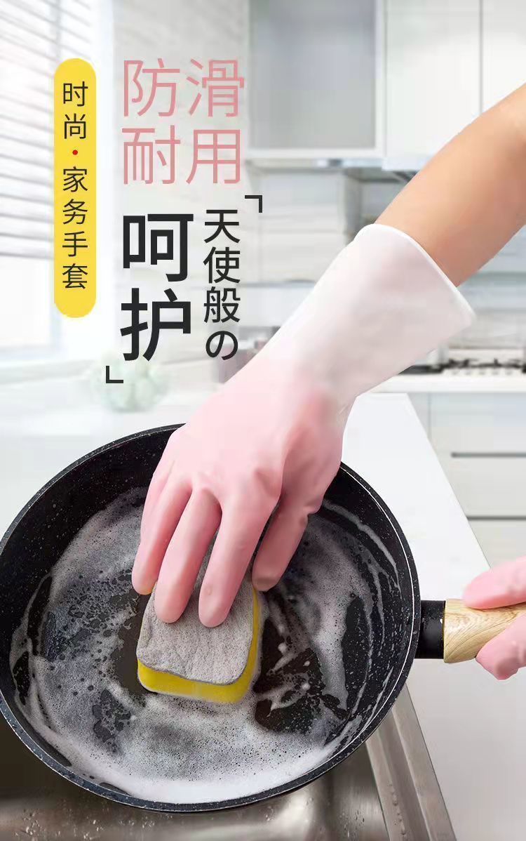 新款耐用耐磨四季洗碗手套女厚款防水家务厨房洗菜洗衣服橡胶乳胶