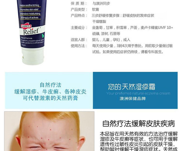 (永久下架)澳洲Hopes Relief 牛皮湿疹膏 60g