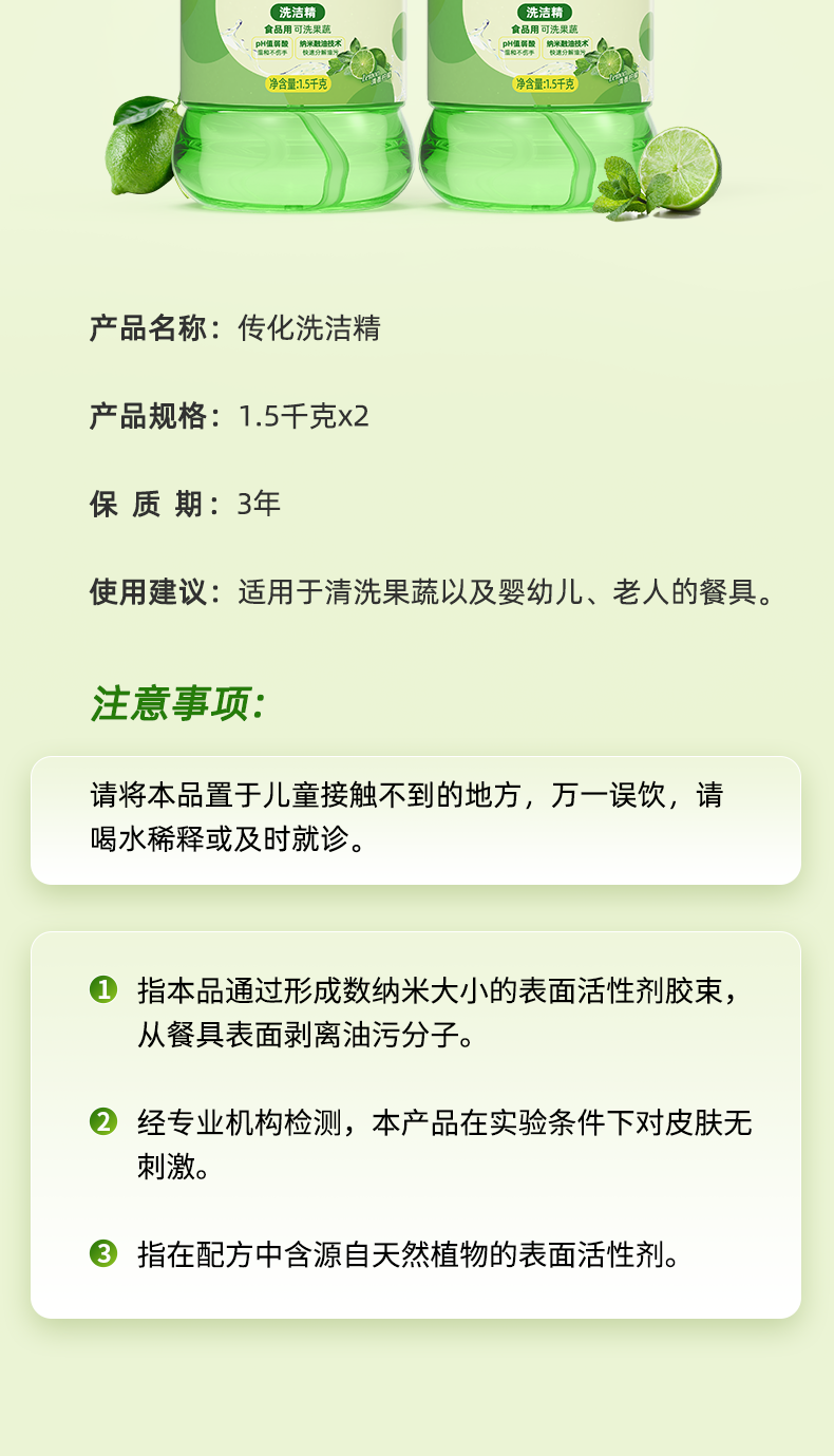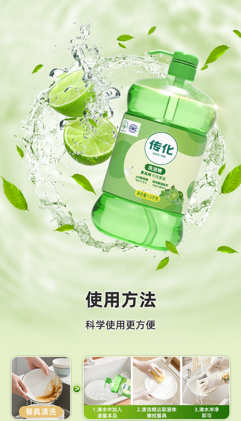 传化1.5kg*2洗洁精套装到手6斤