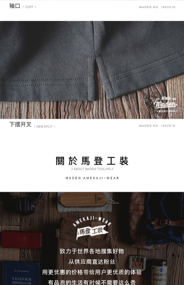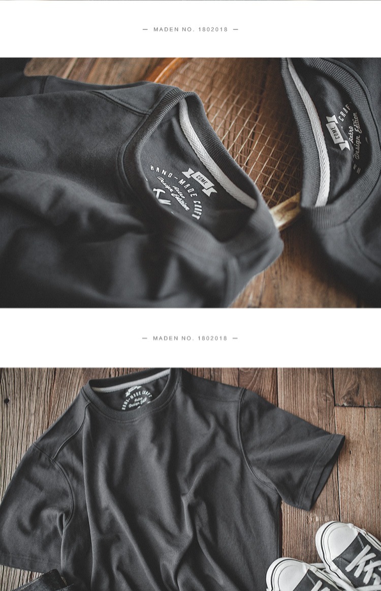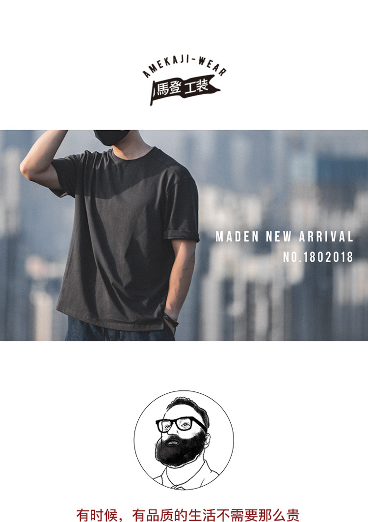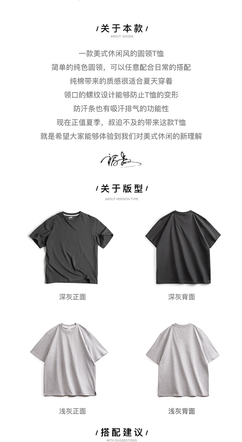 工装优选 日系vintage宽松圆领T恤夏季阿美咔叽男士纯色休闲体恤