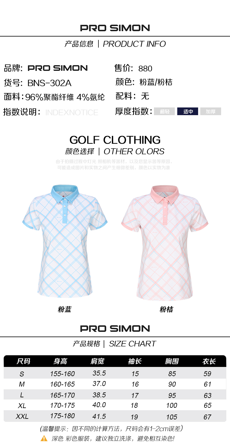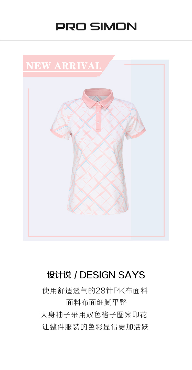 BNS-302A(PROSIMON高尔夫春夏女款格子印花短袖POLO衫T恤)