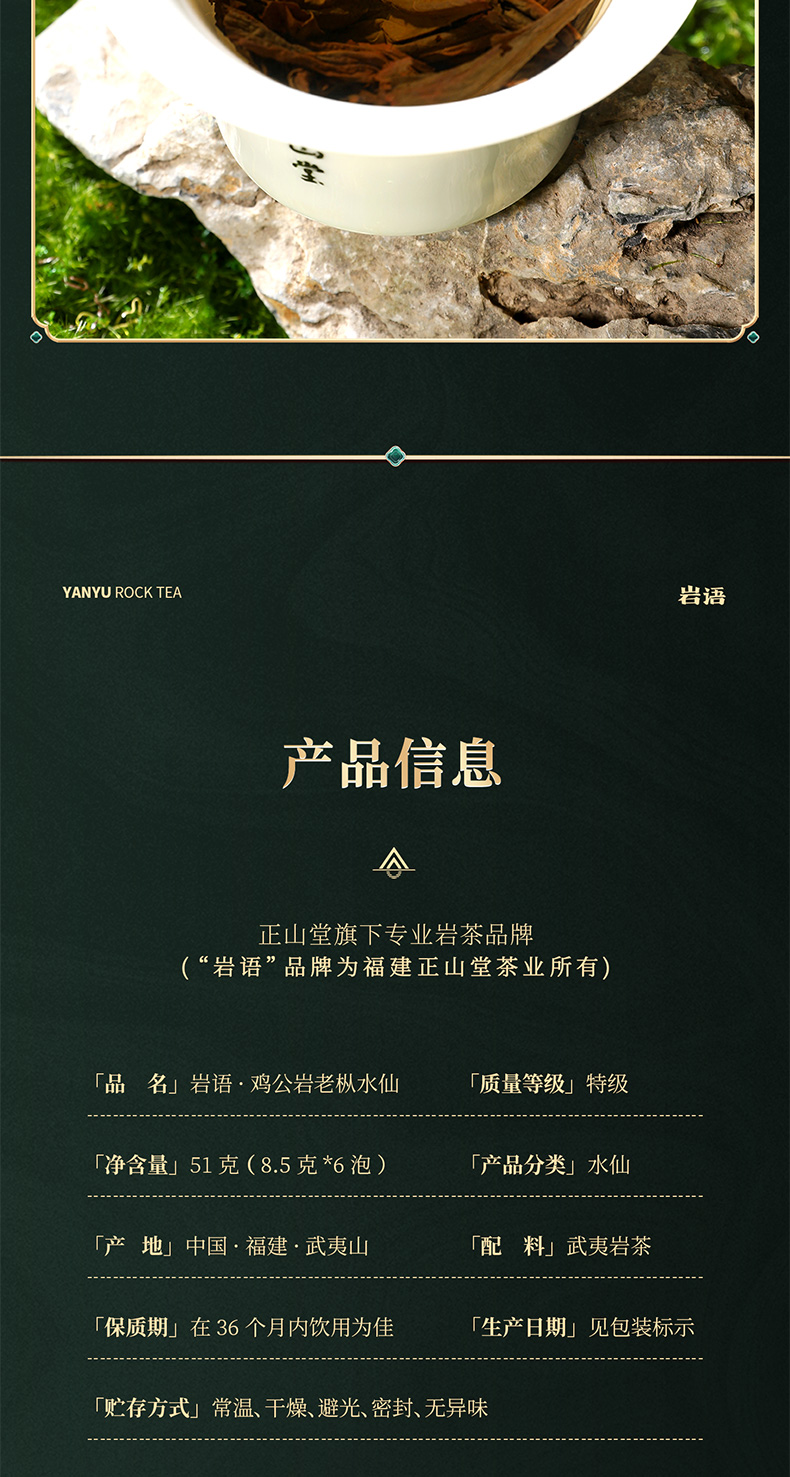 岩语 鉴山鸡公岩老枞水仙礼盒装 特级正宗武夷山正岩茶叶51g