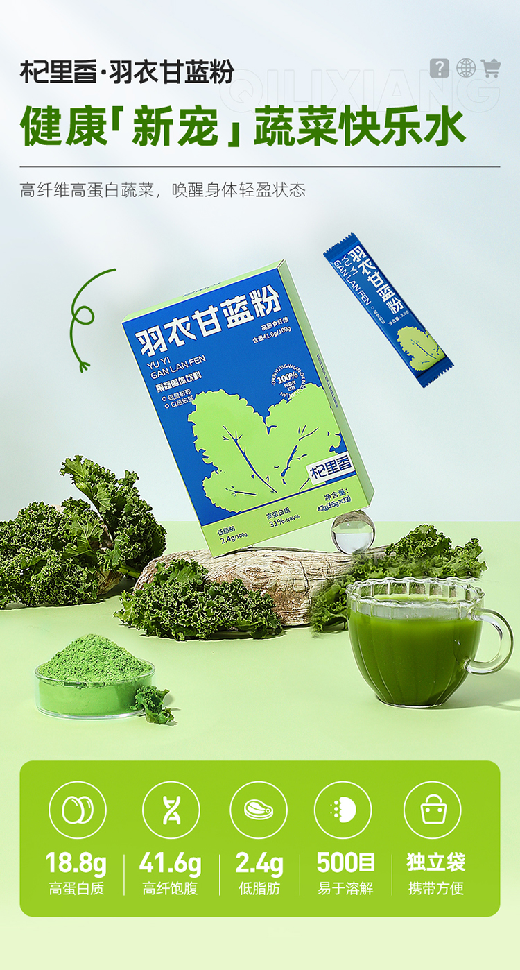 【冬季滋补】杞里香42g盒装羽衣甘蓝粉,多种花样搭配,畅享轻食乐趣, 健身达人、营养师和模特们的健康饮食伴侣