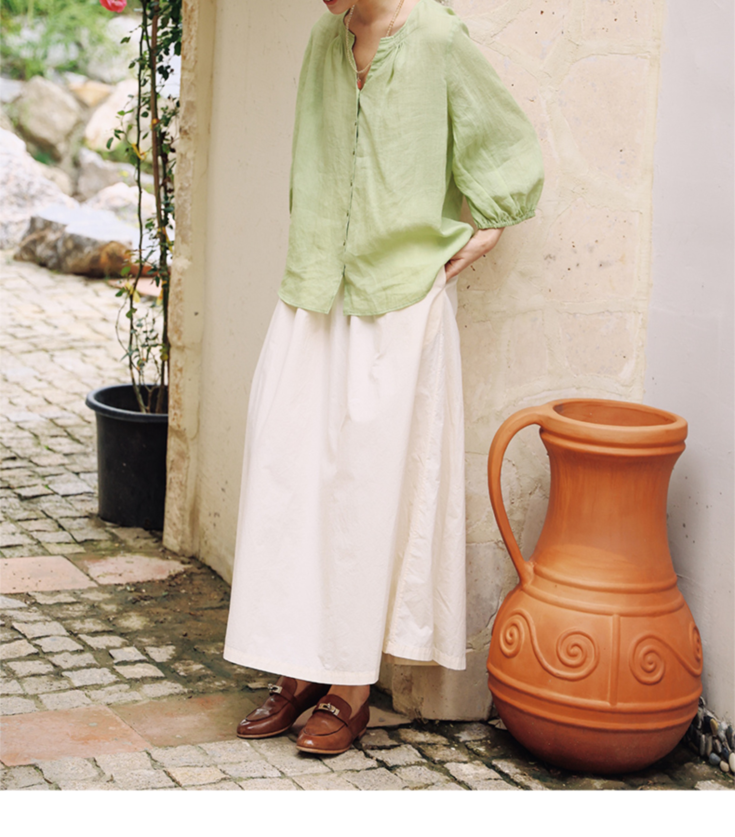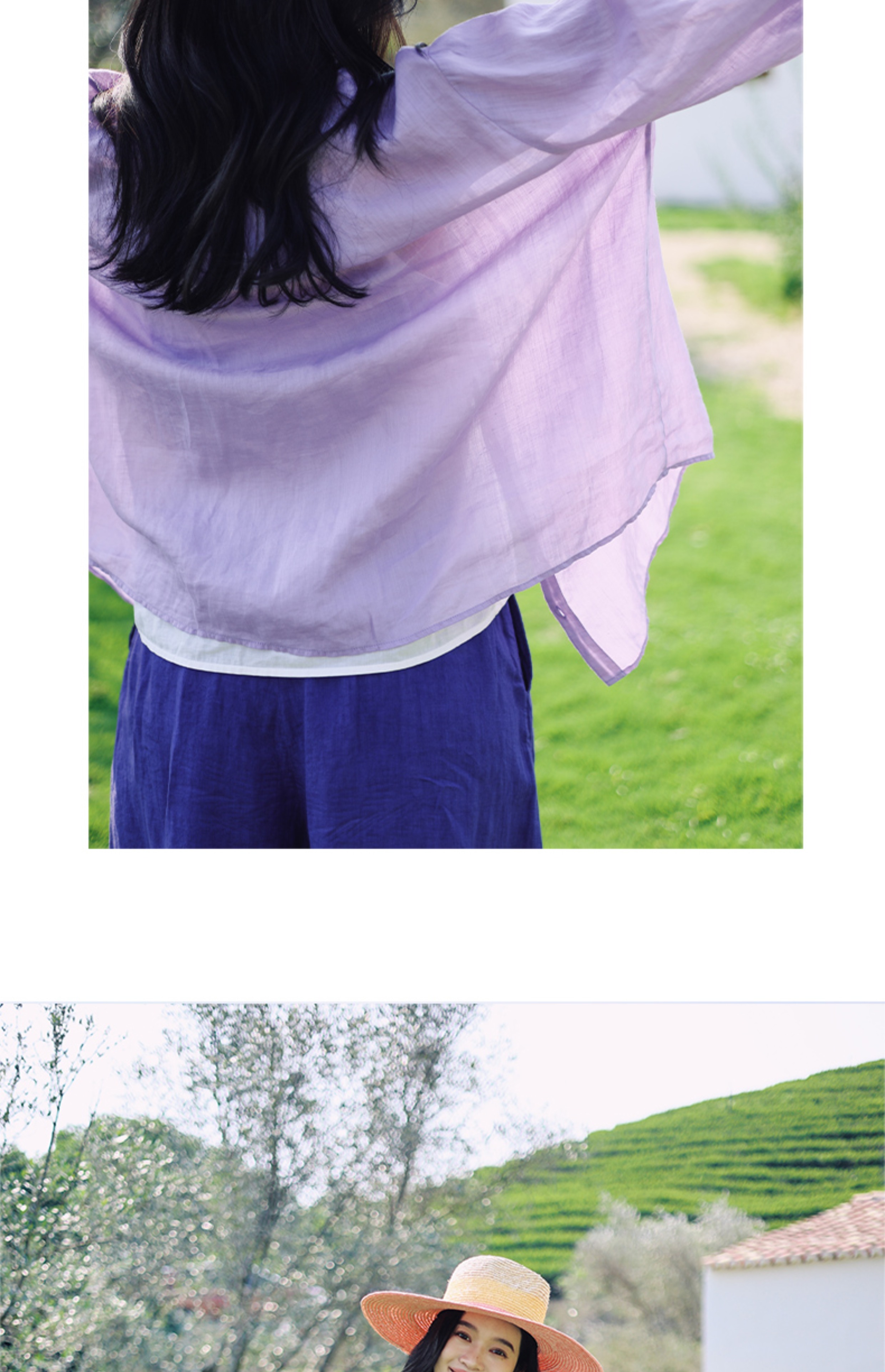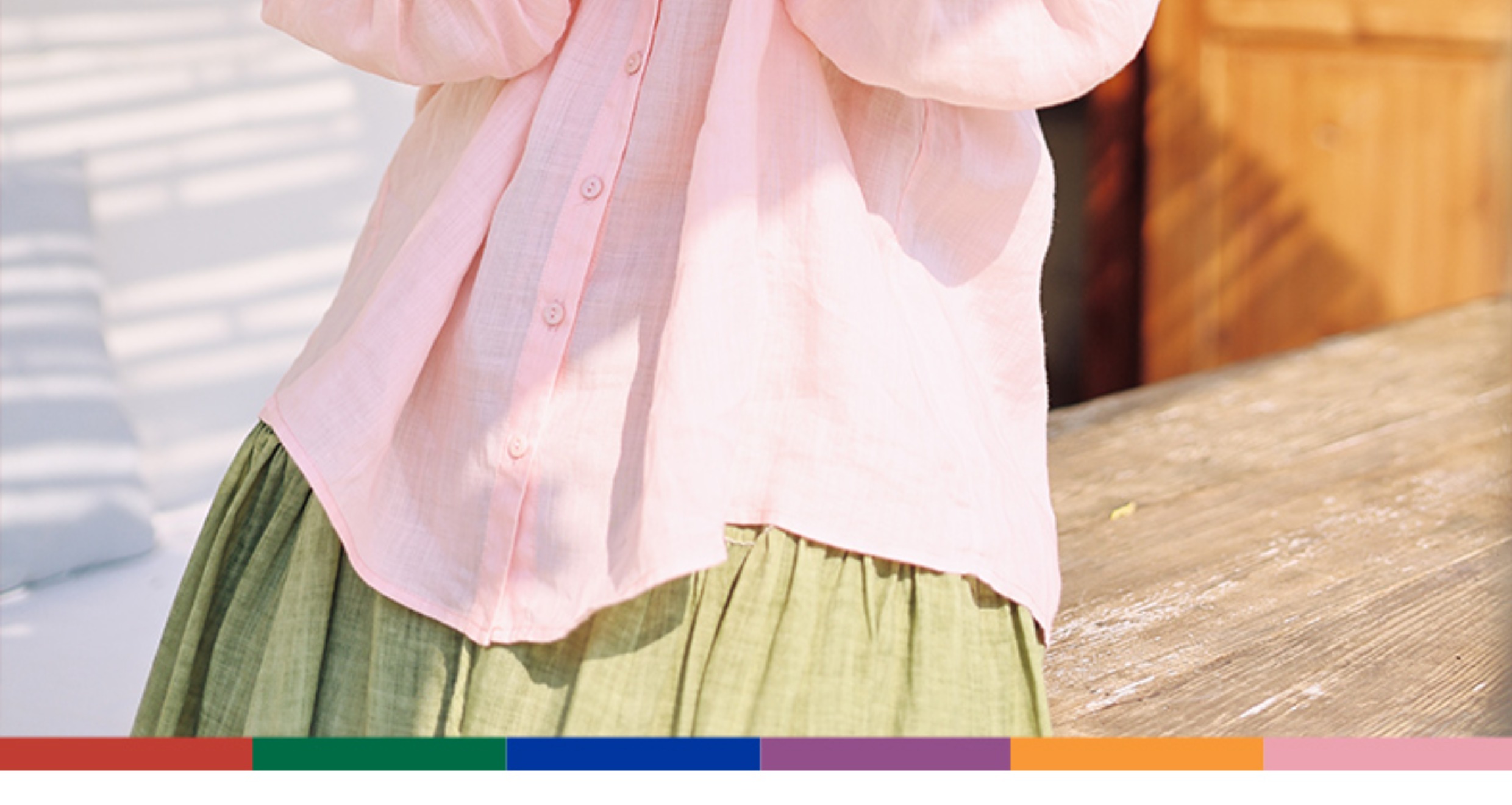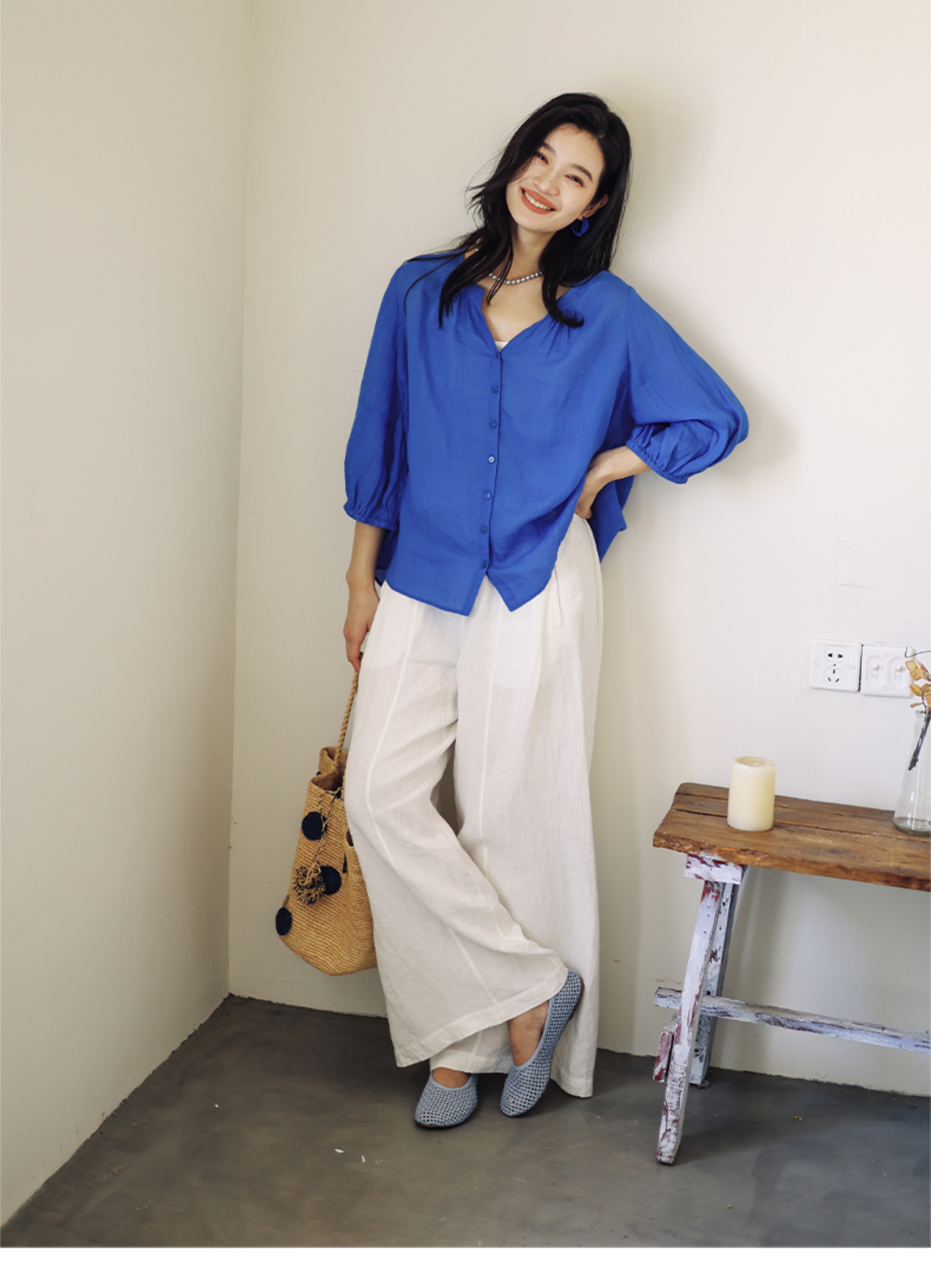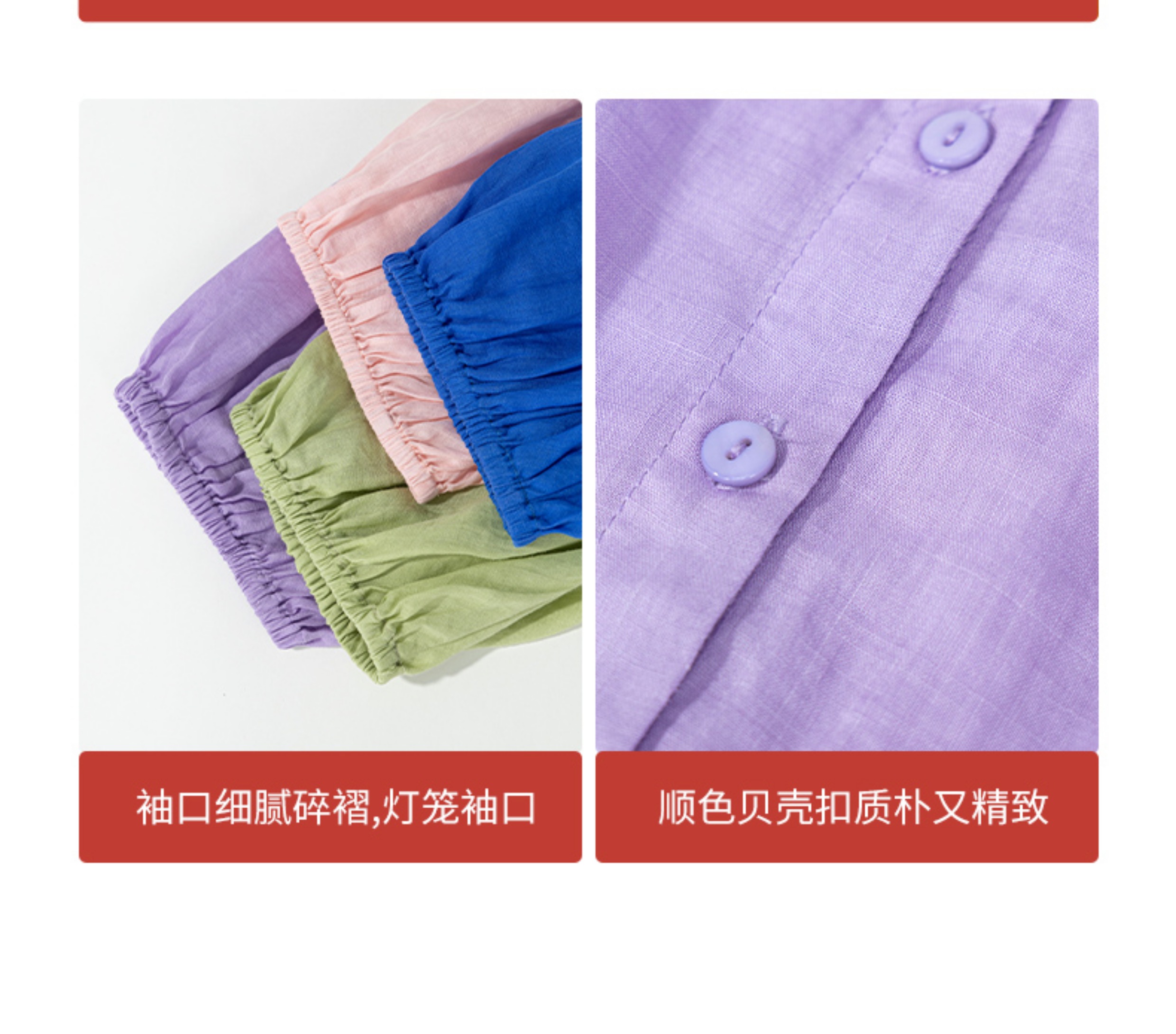 绽放388朵/【多巴胺】高支苎麻v领防晒小衫开门襟塔克七分袖衬衫