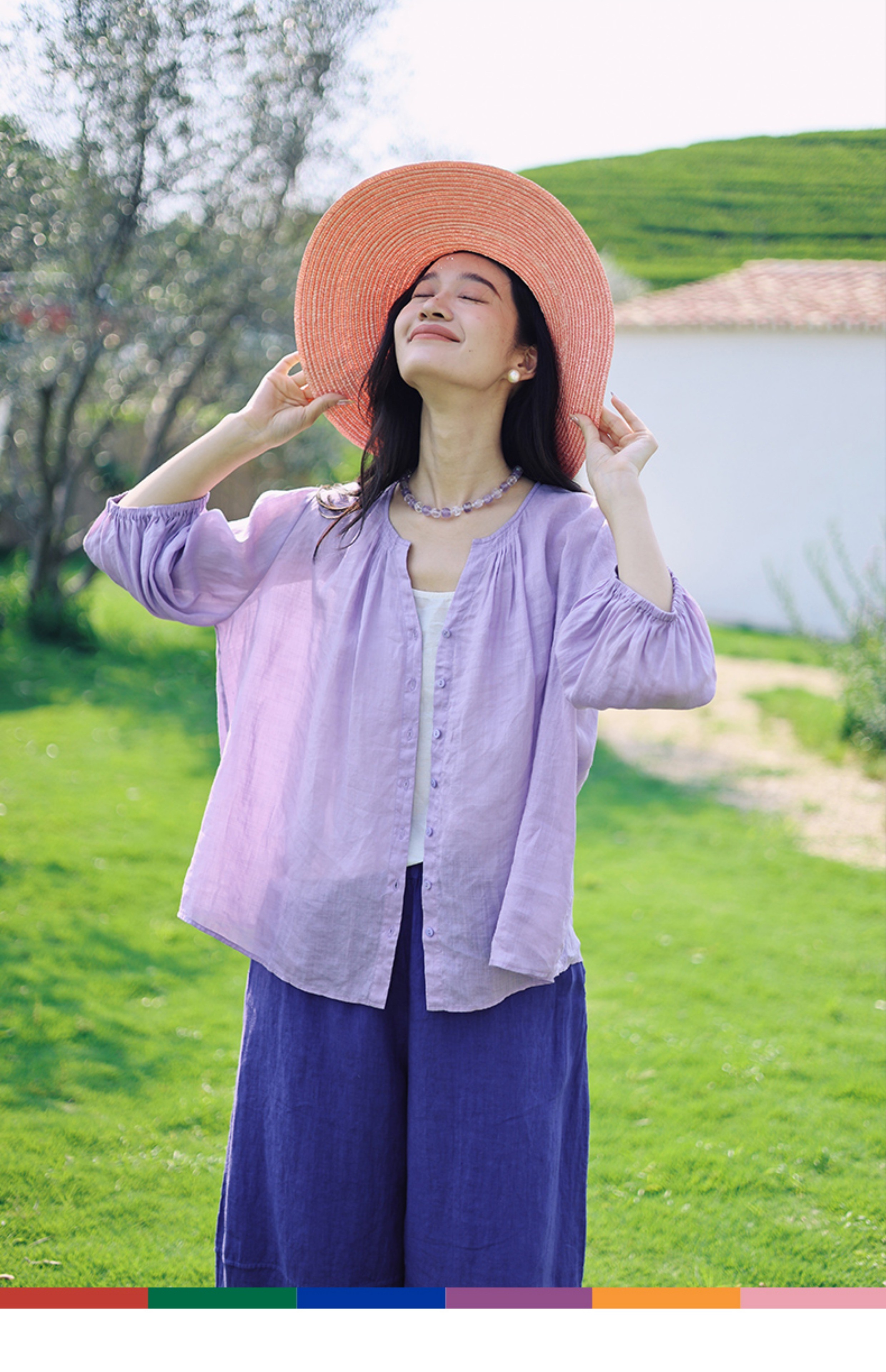 以天然亚麻为载体,融合热烈色彩与自在剪裁为身在城市、心怀远方的女性提供兼具美学与舒适的旅行着装