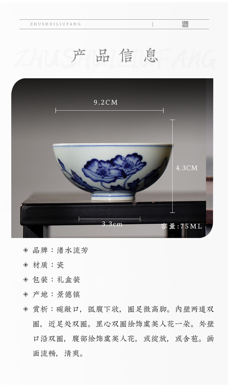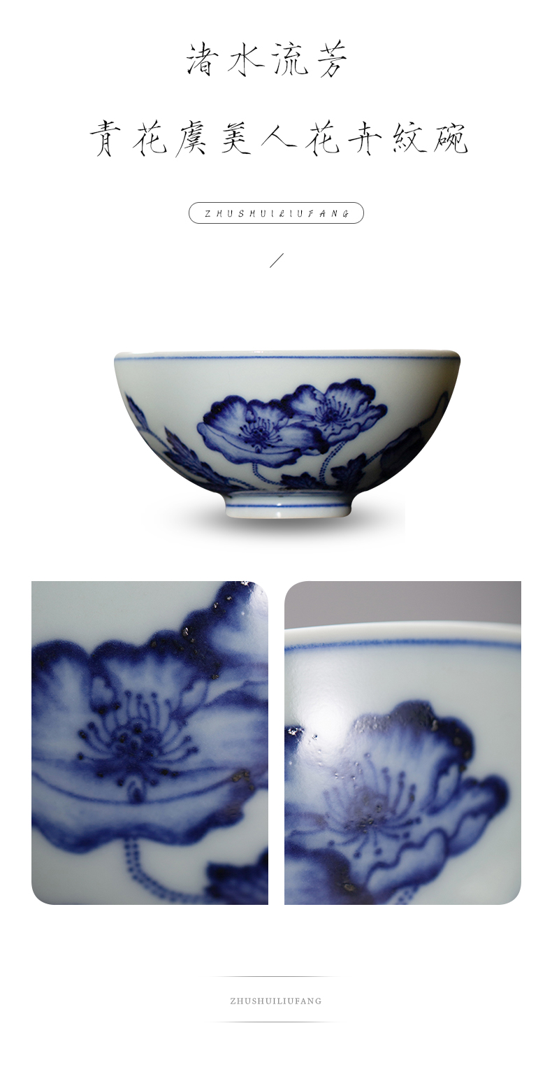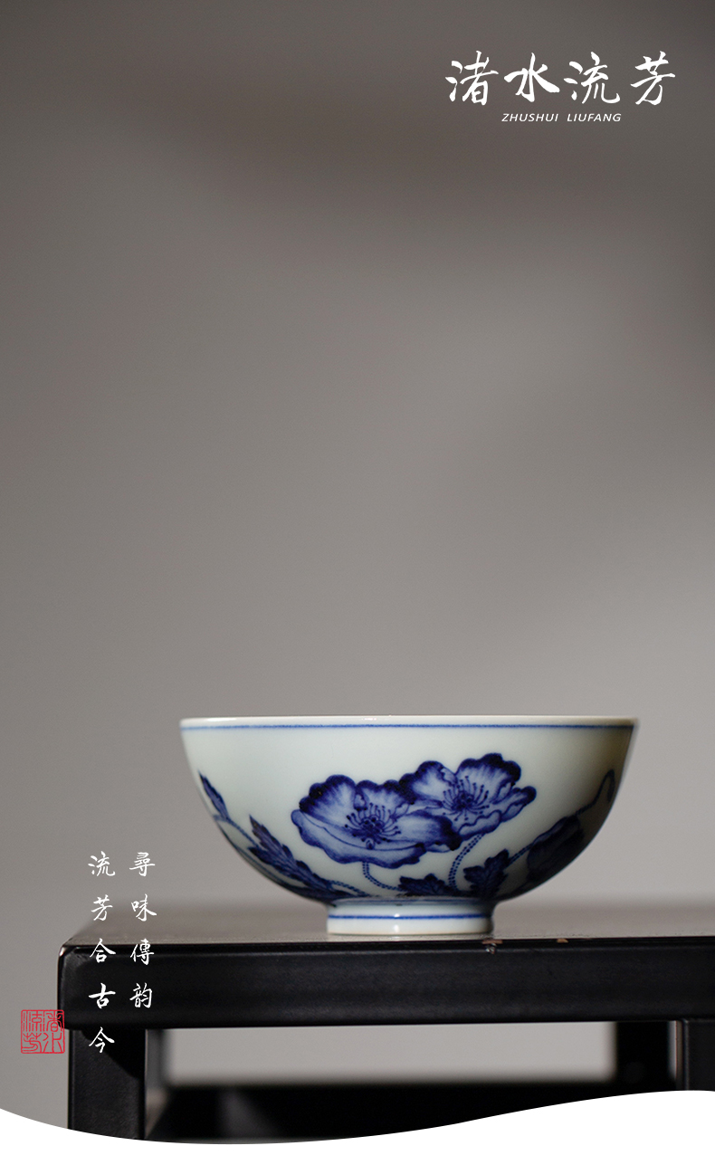 渚水流芳青花虞美人花卉纹碗(缺货)
