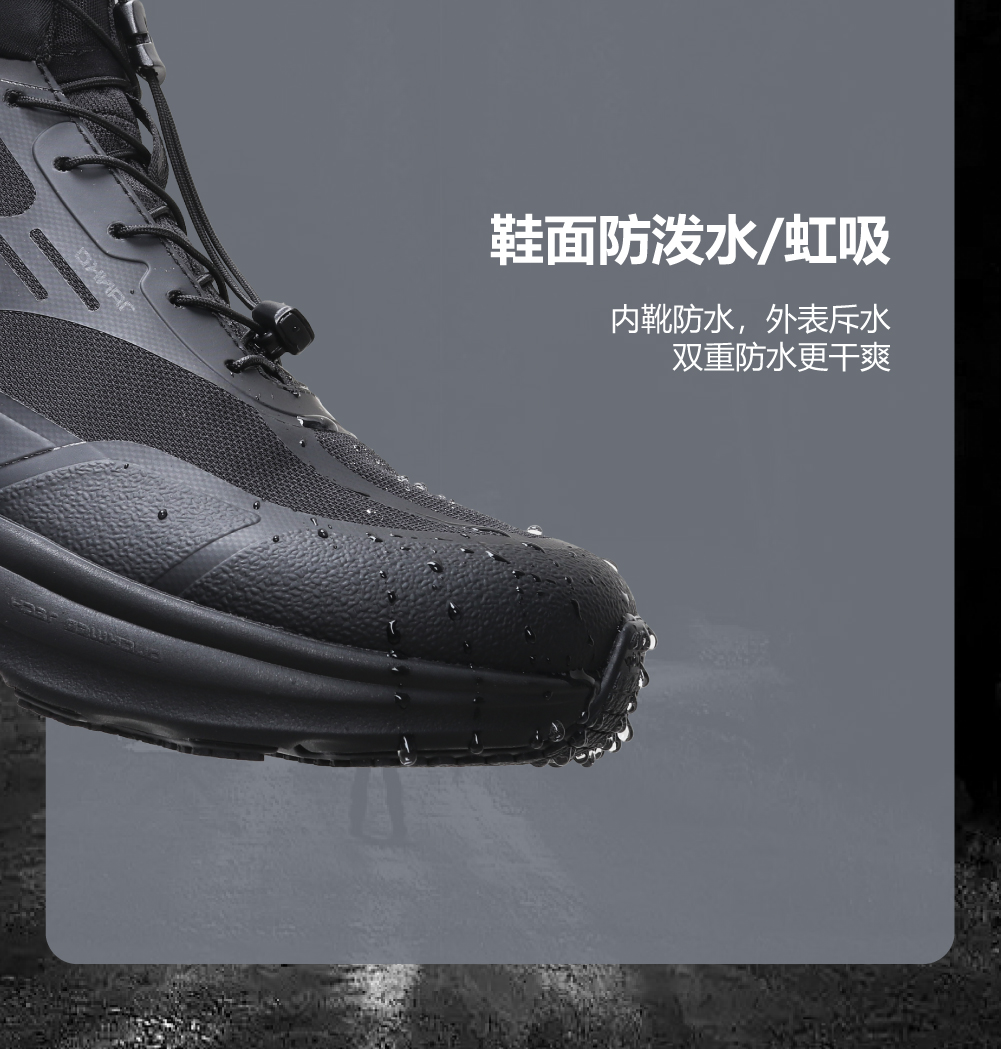 【内靴防水 外表斥水】翱戈宽楦中帮户外保暖运动鞋 袜套结构内里 具有保暖效果