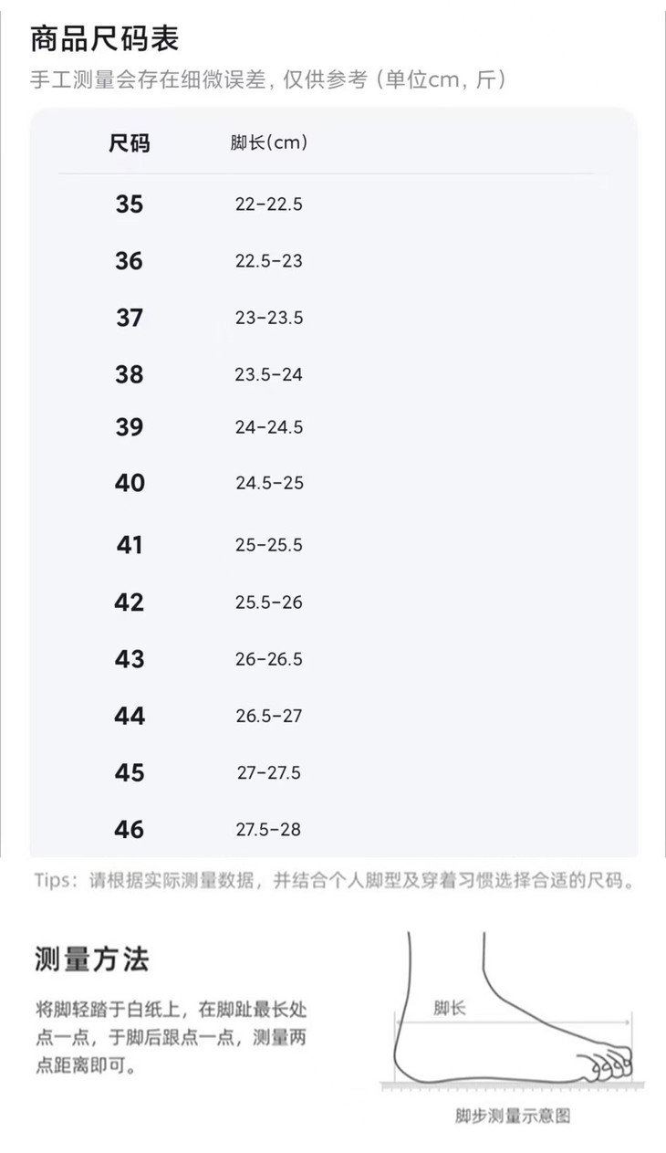 🚨建议拍大一码!可以获得更舒适的包裹感,避免压脚背哦!