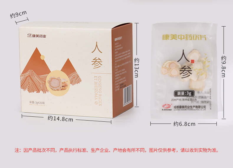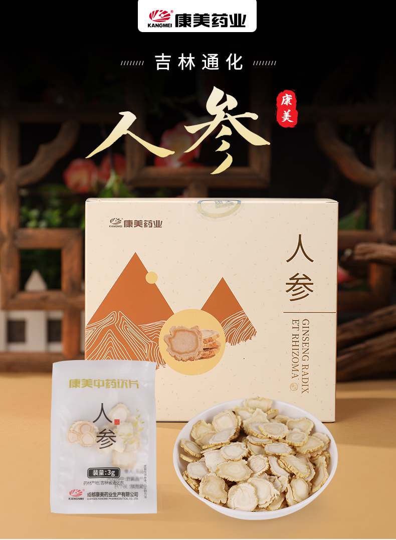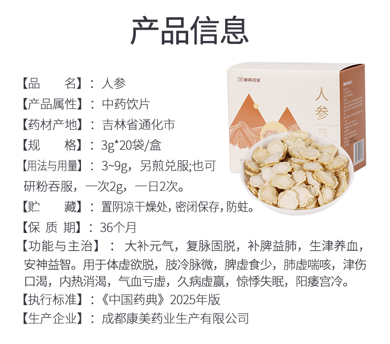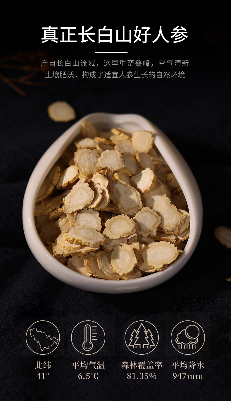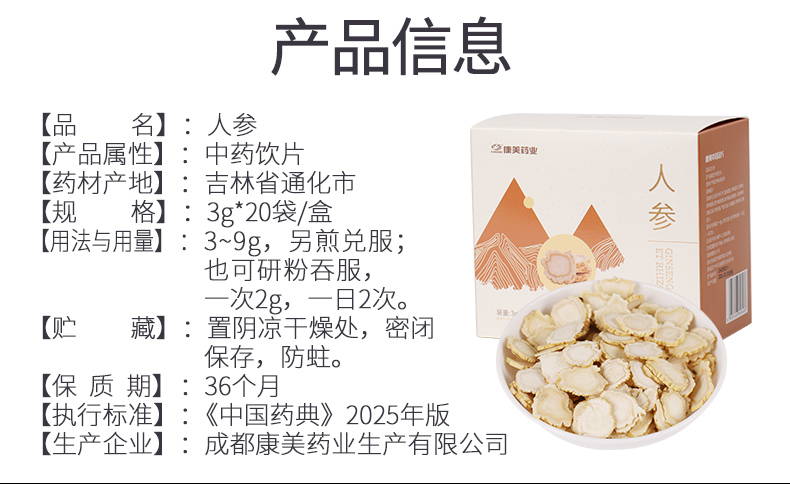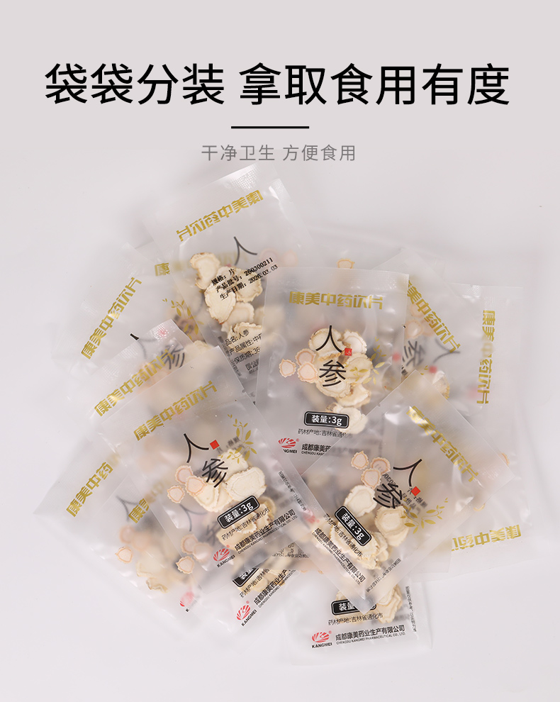 人参片60g/盒(3g*20袋) 大补元气 安神益智 正宗长白山人参皂苷高中药材中药饮片 人参礼盒送礼送长辈礼盒