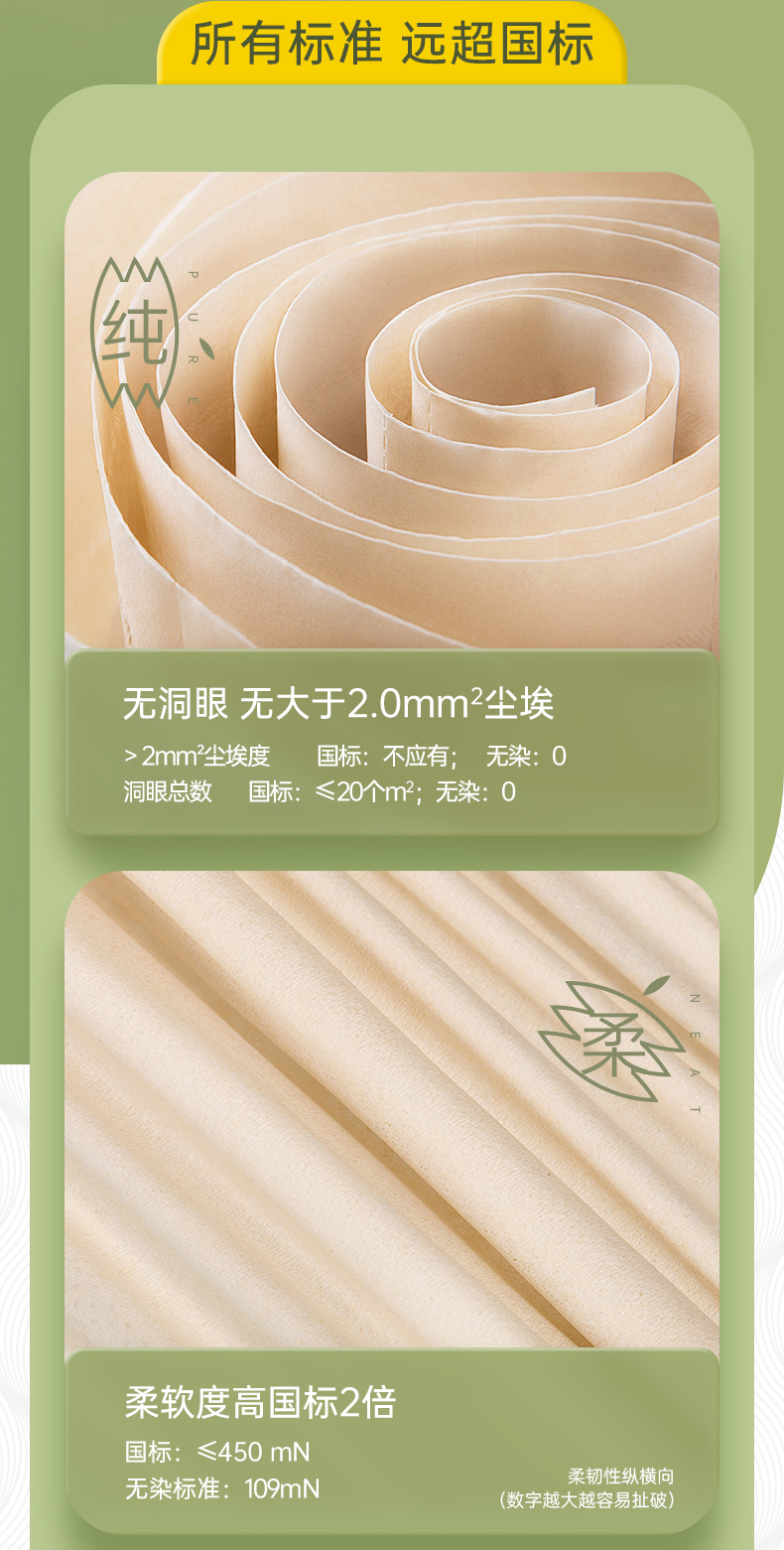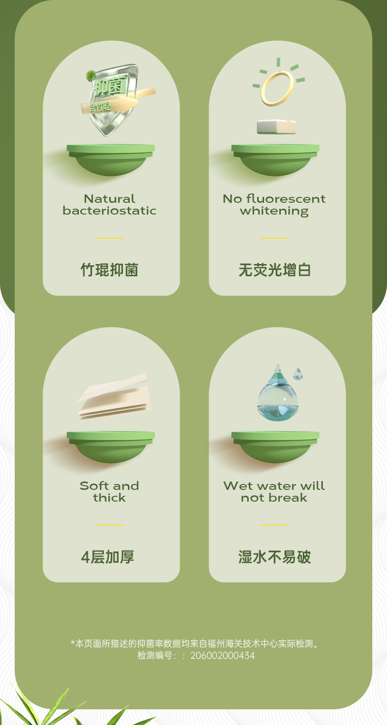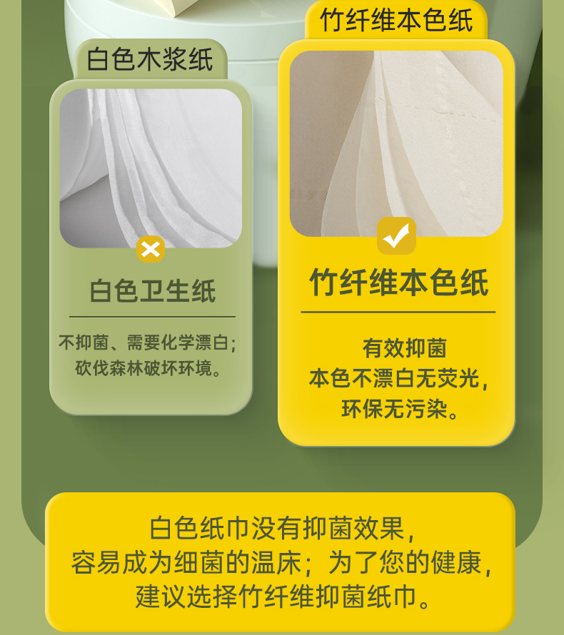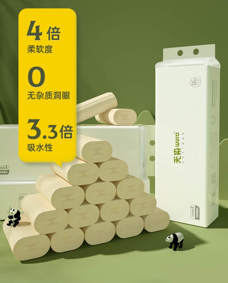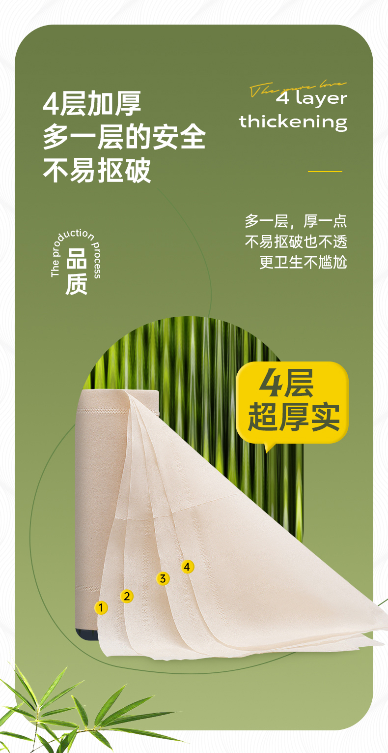 无染竹纤维四层加厚家用卫生卷纸 140克27卷/箱