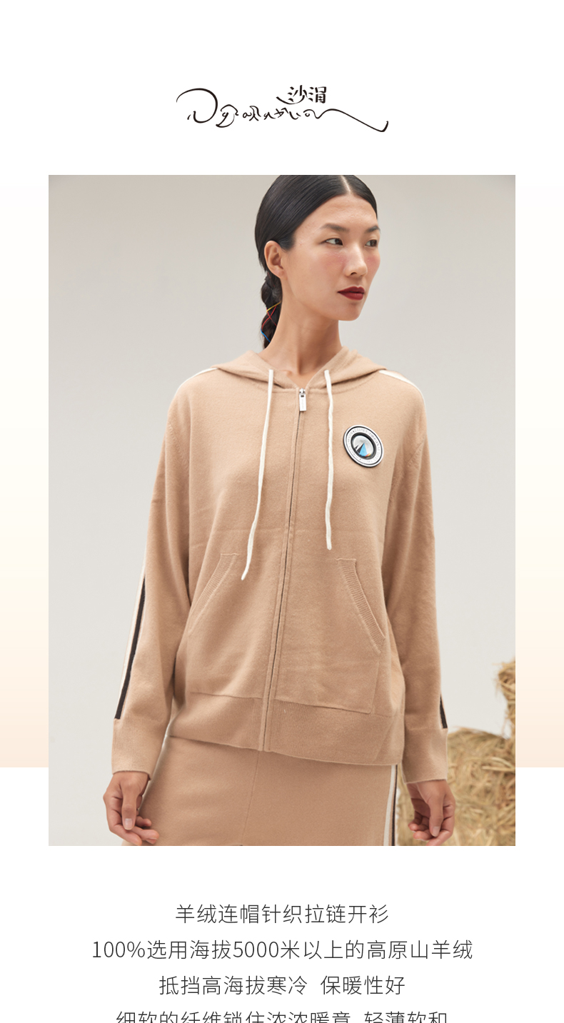 疗愈羊绒| 羊绒女士连帽针织拉链开衫SJF95W528K