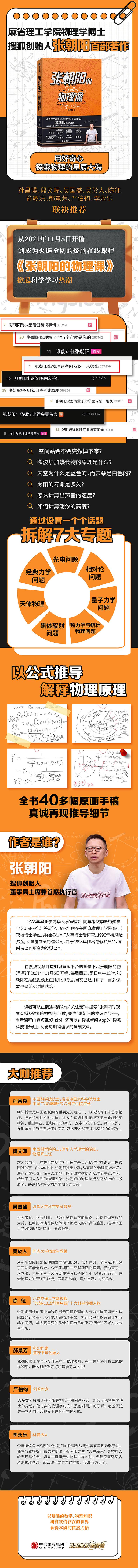 在搜狐视频打造知识直播平台的背景下,《张朝阳的物理课》于 2021年 11月5日开播,每周周五、周日中午12时,张朝阳在搜狐视频上直播开讲物理。目前已经开讲了一百多课,本书是前50讲的内容。