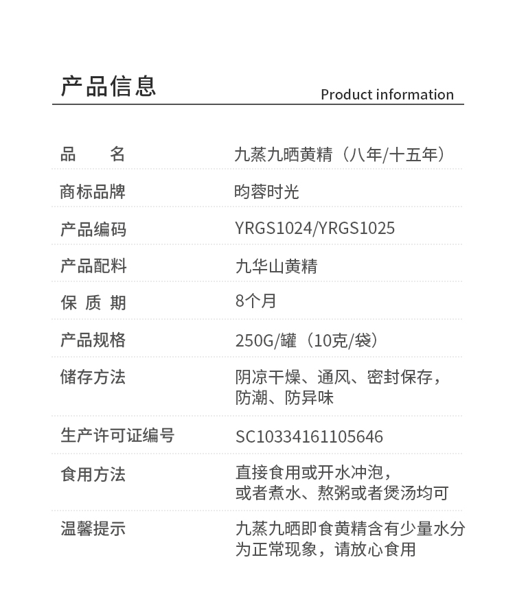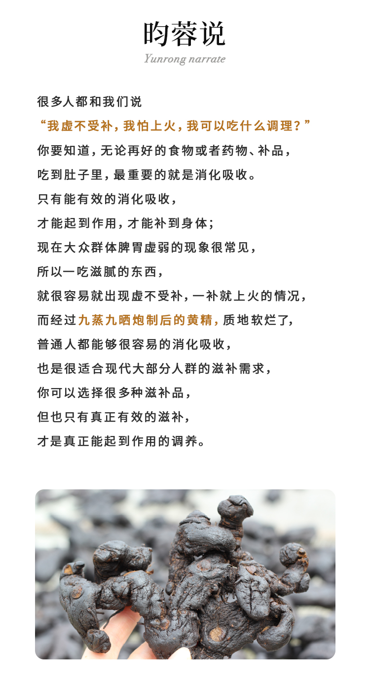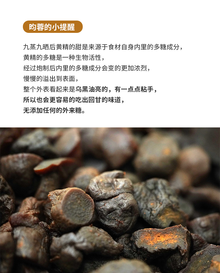 【昀蓉 · 15年九蒸九晒黄精 】(10g*25块/盒)从原材料,到炮制,九蒸九制半步不敢减少工序,(建议收到冰箱冷藏保存)
