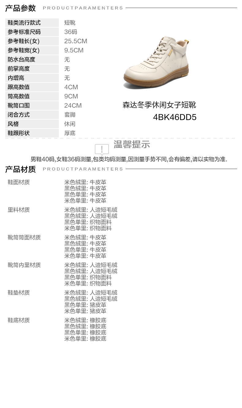 【云粉节】BF楼 森达舒适休闲鞋2025冬季新款软底绑带短靴4BK46吊牌价1099活动价539