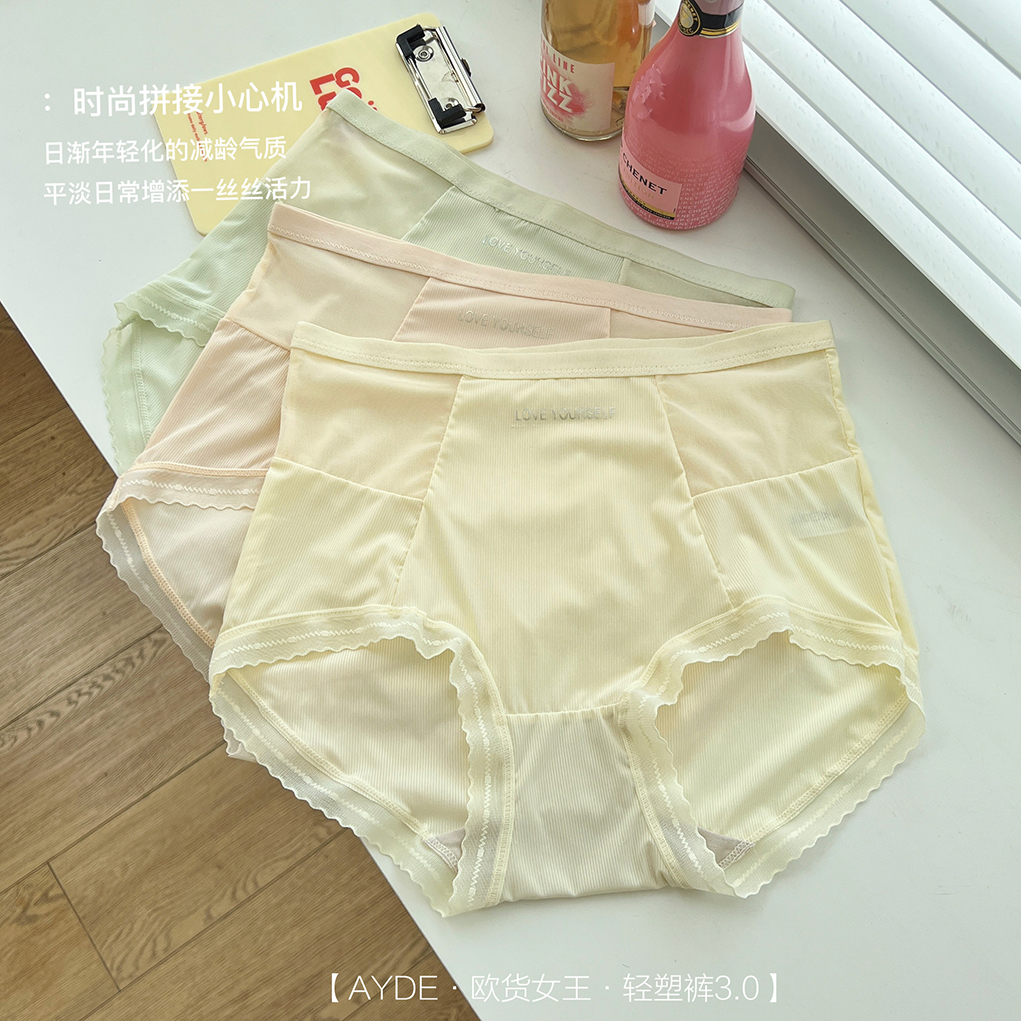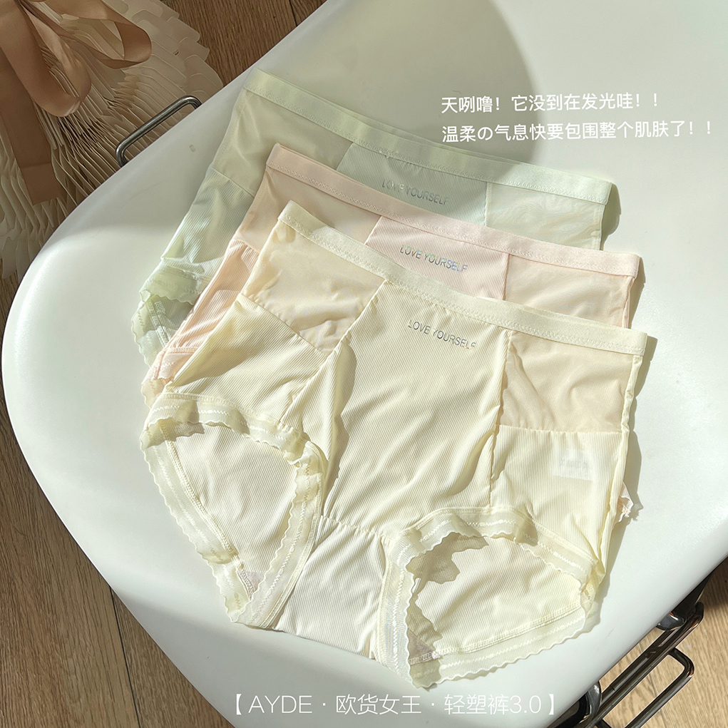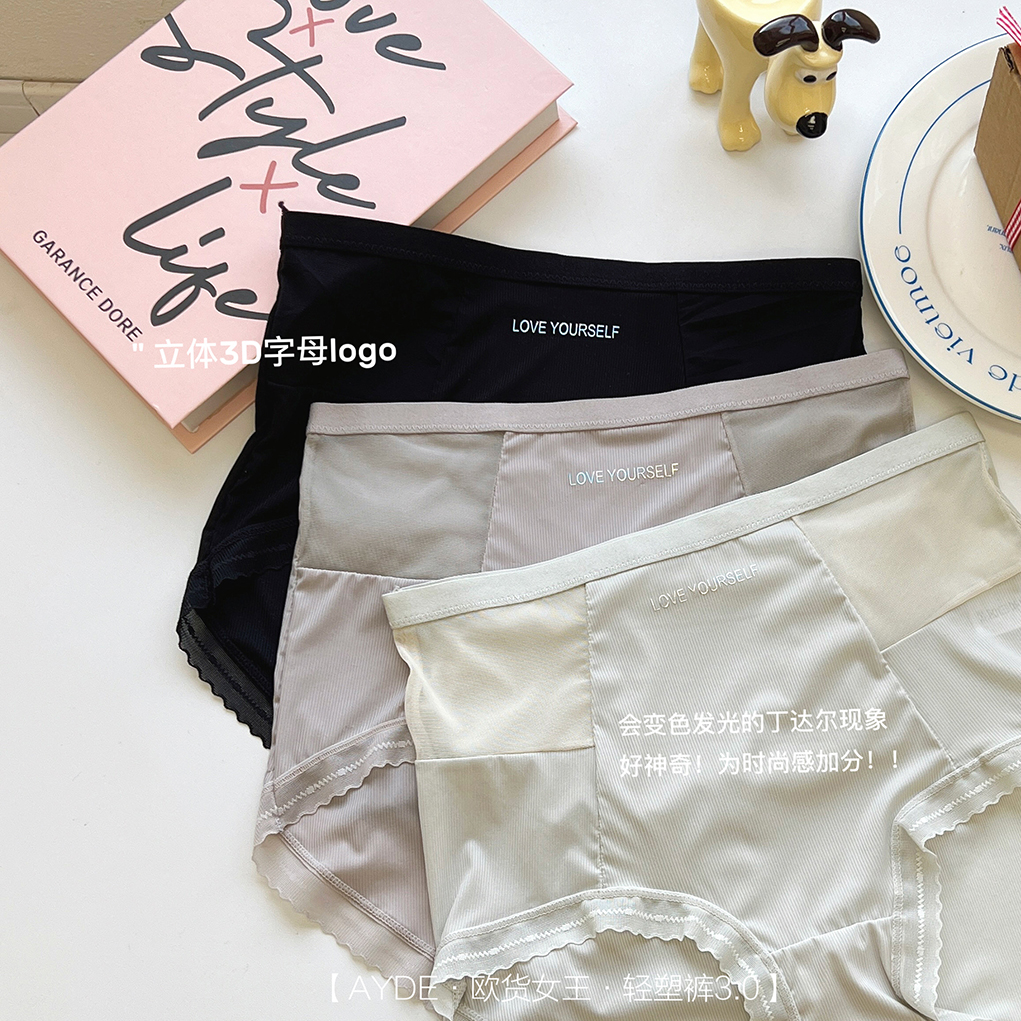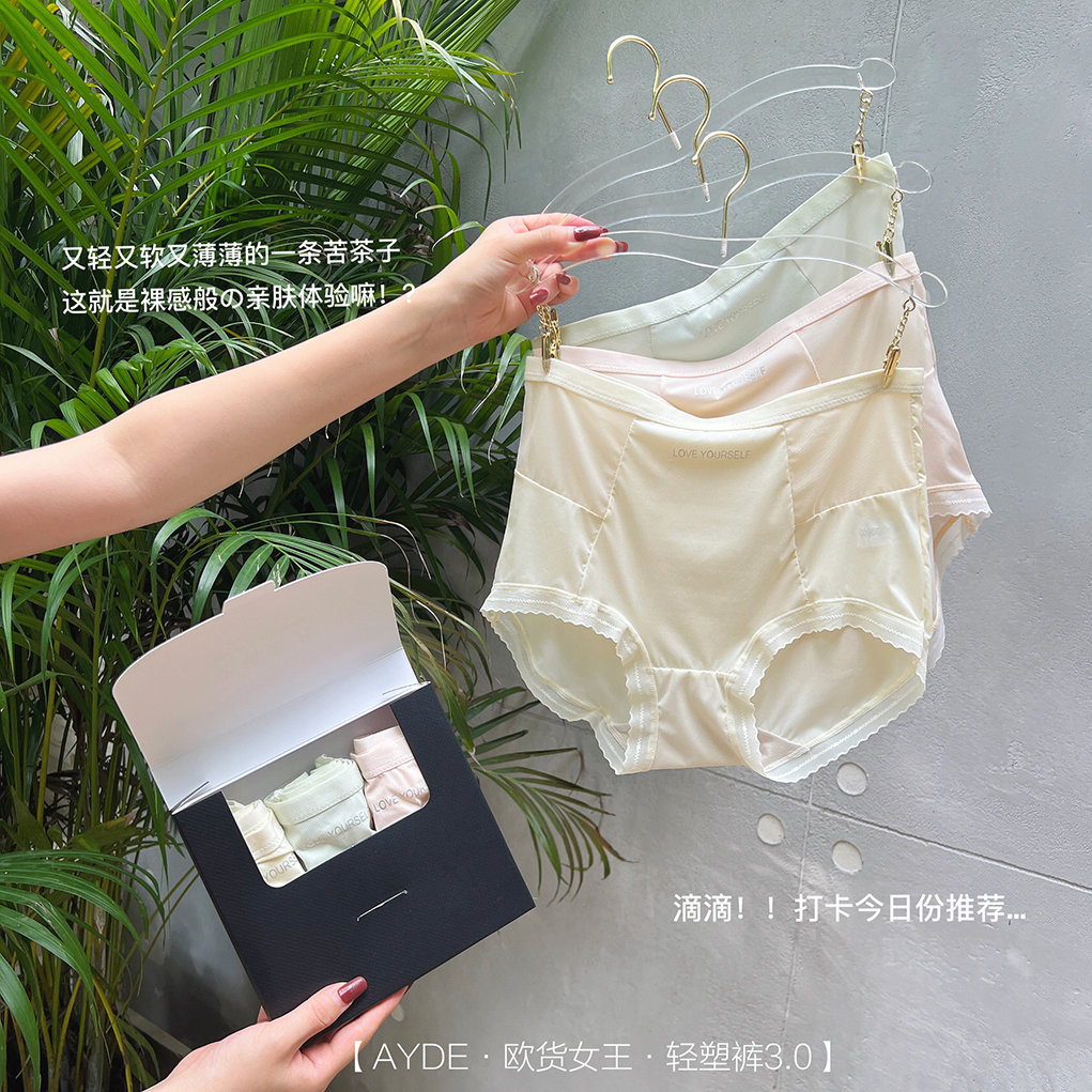 【AYDE·欧货女王·轻塑裤3.0】1311# 简约小清新高颜值 轻柔透气高弹 中高腰字母内裤3条礼盒装