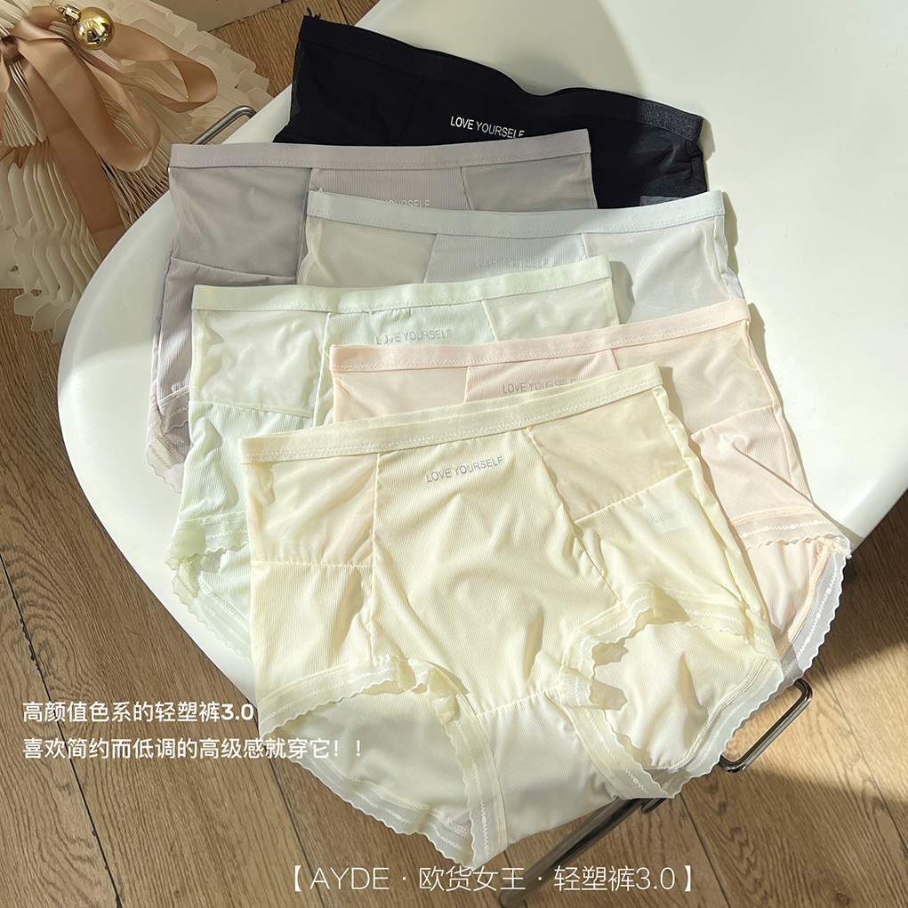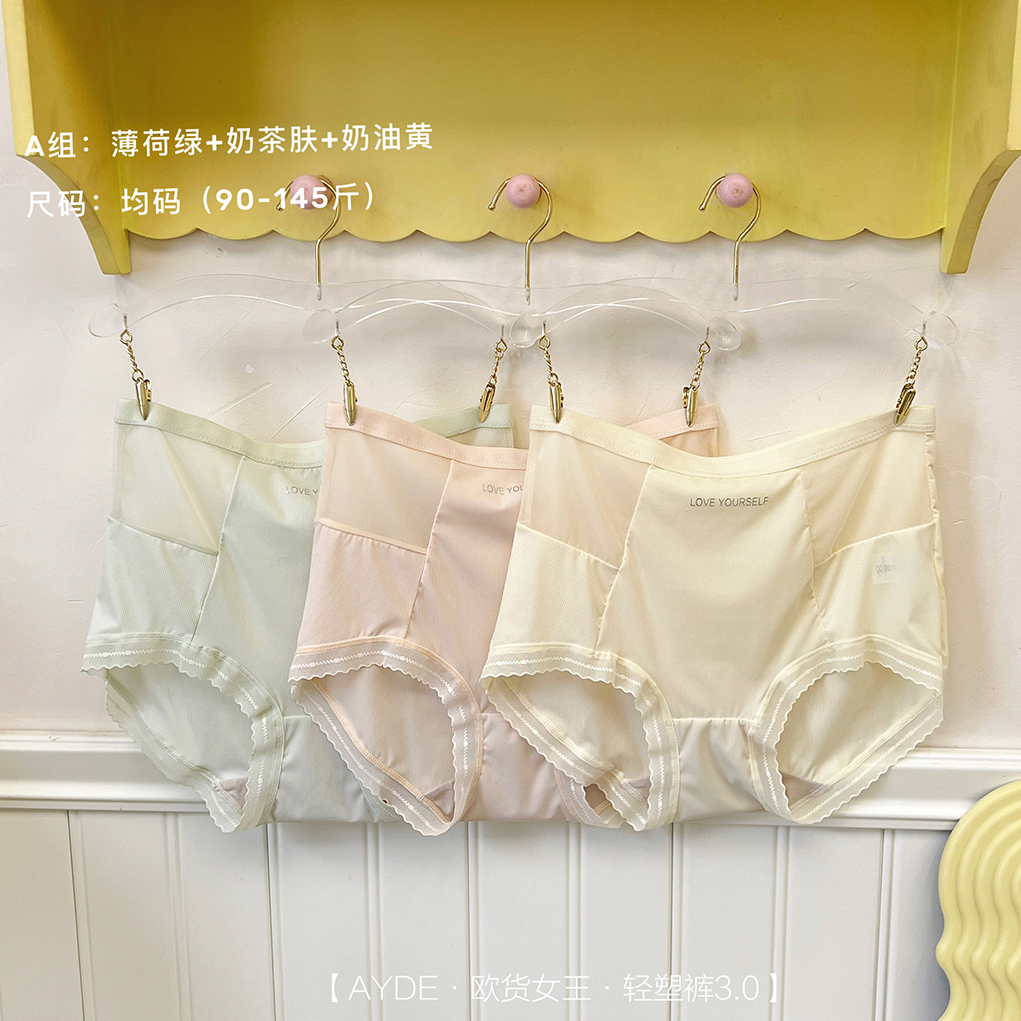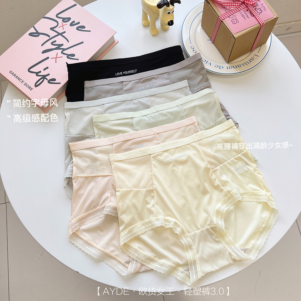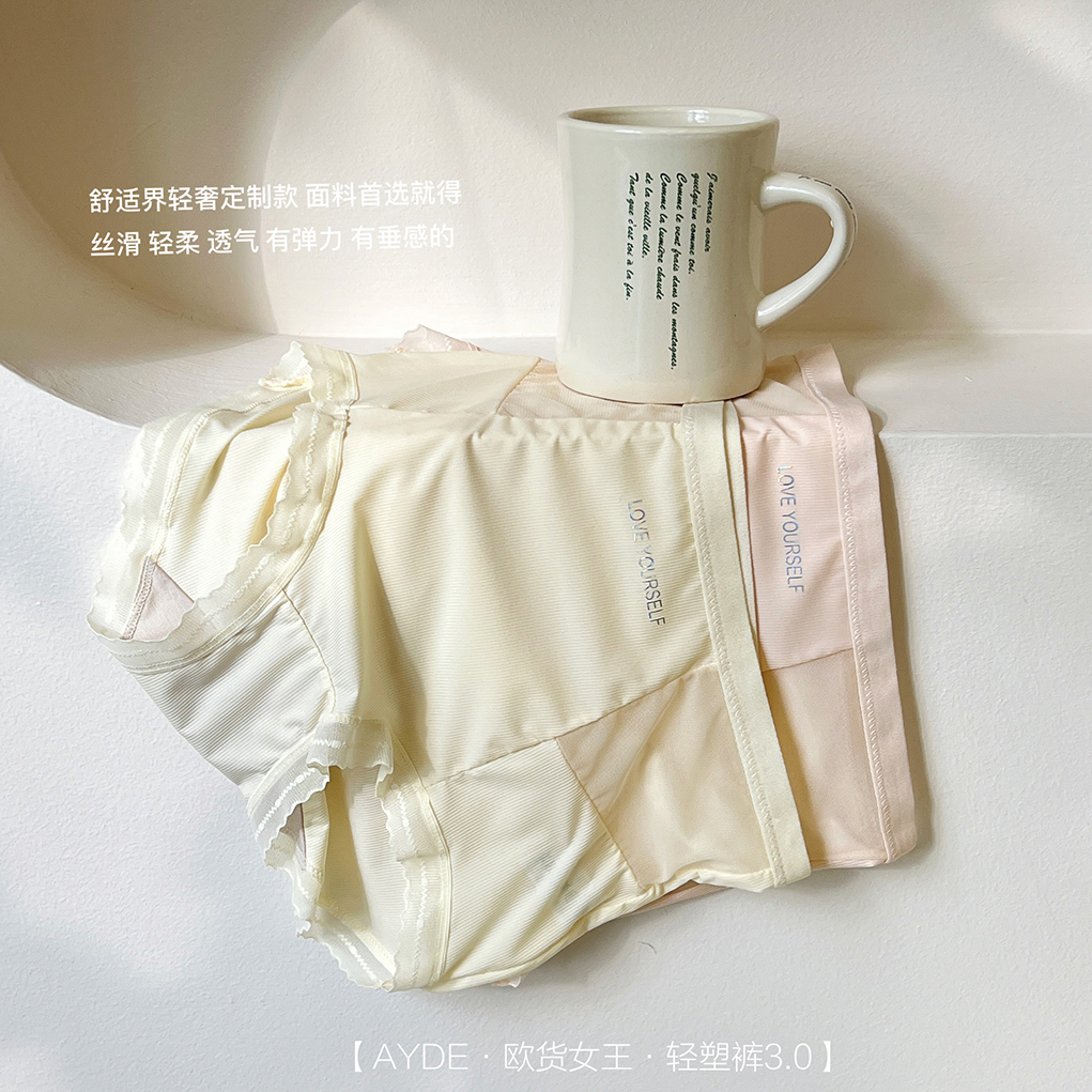 【AYDE·欧货女王·轻塑裤3.0】1311# 简约小清新高颜值 轻柔透气高弹 中高腰字母内裤3条礼盒装
