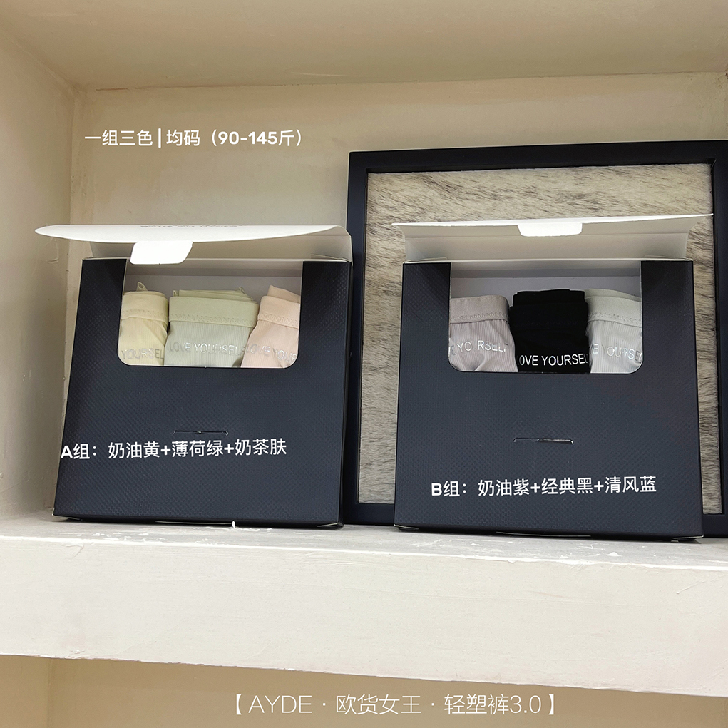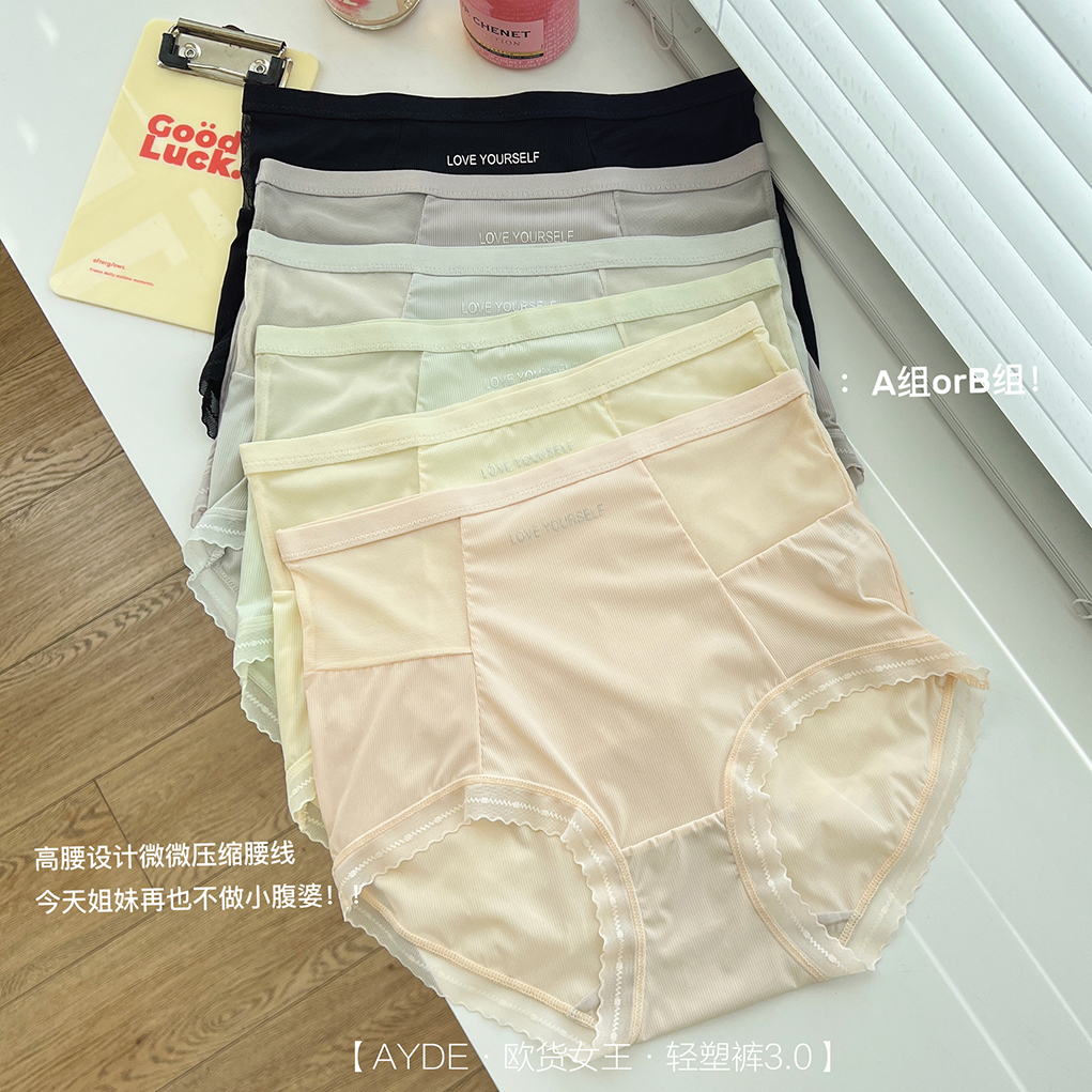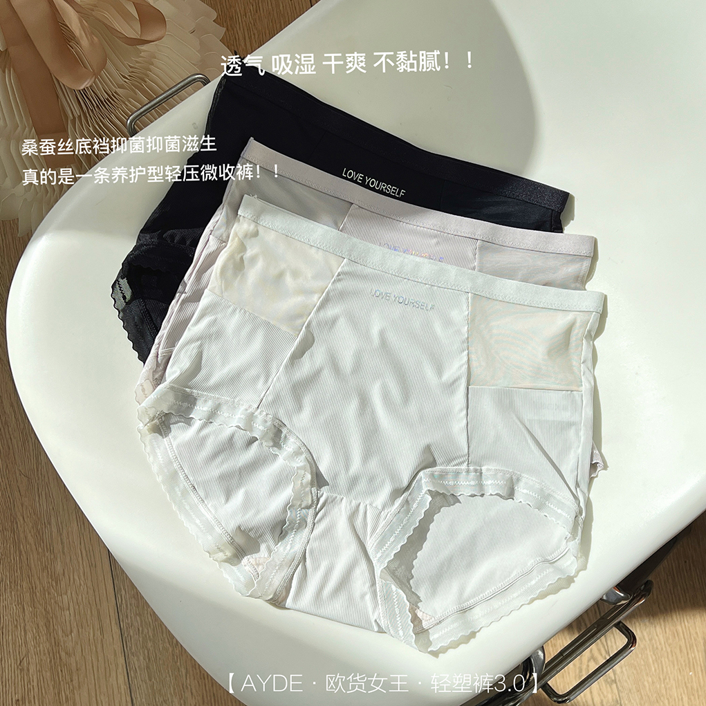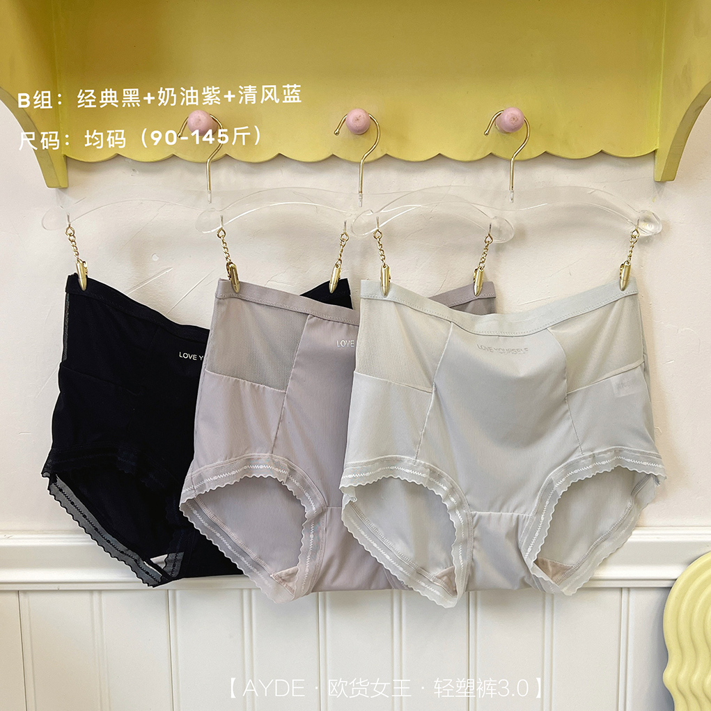 【AYDE·欧货女王·轻塑裤3.0】1311# 简约小清新高颜值 轻柔透气高弹 中高腰字母内裤3条礼盒装