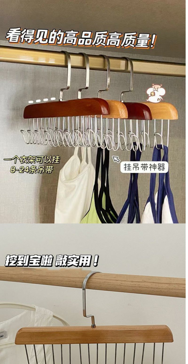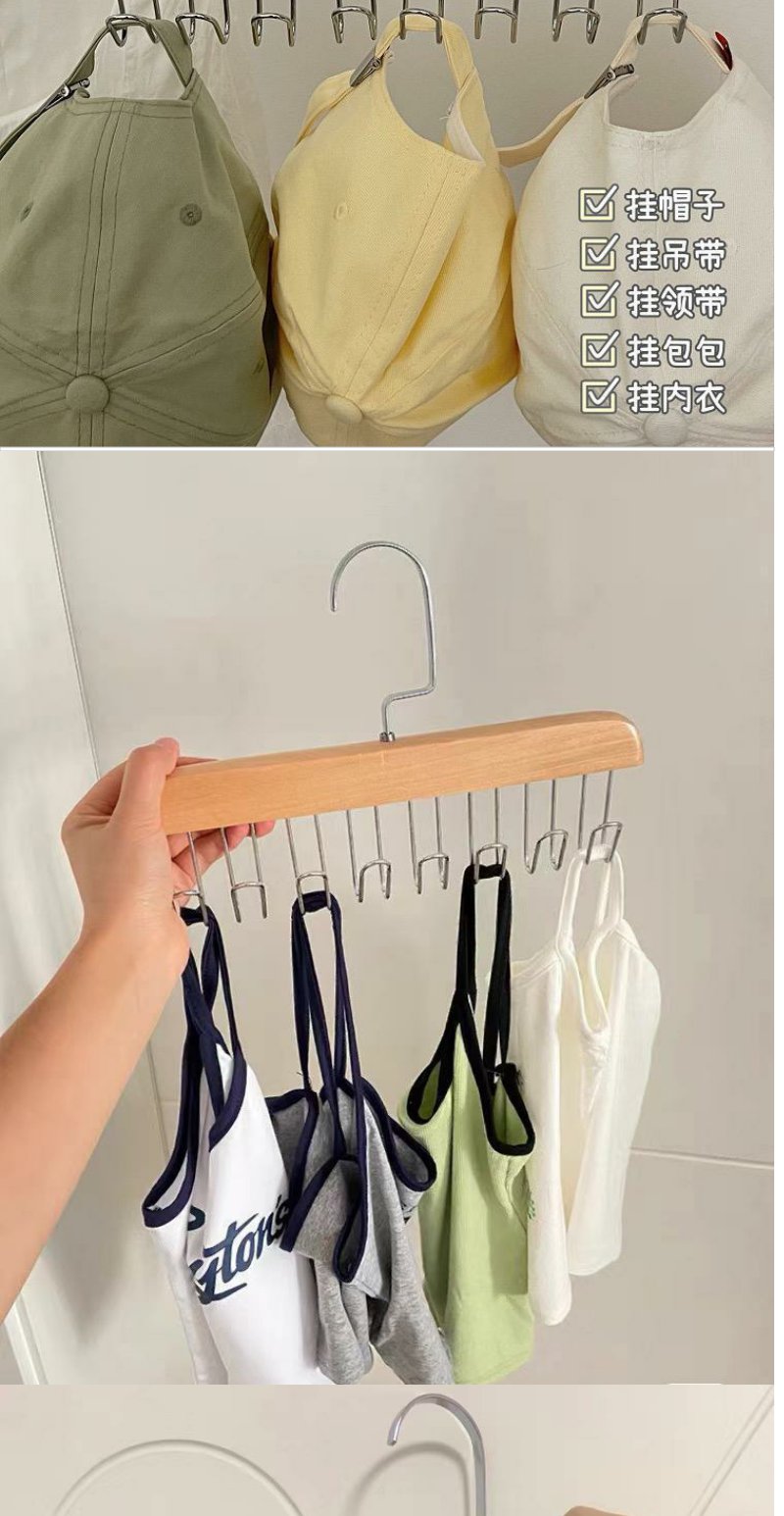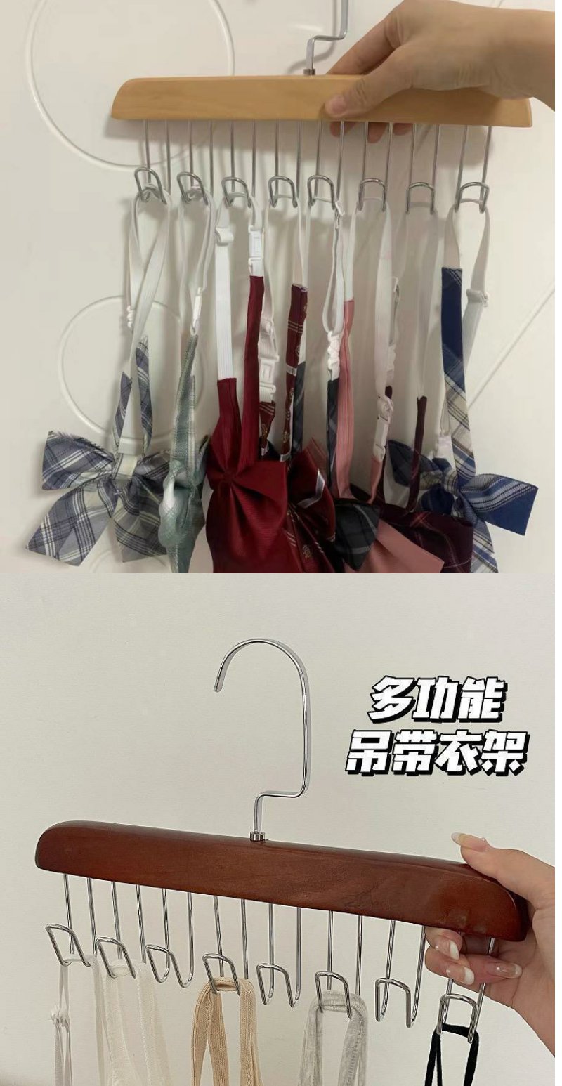 宿舍服装店实木晾衣架 多功能内衣背心领带挂钩 木质吊带衣架1个