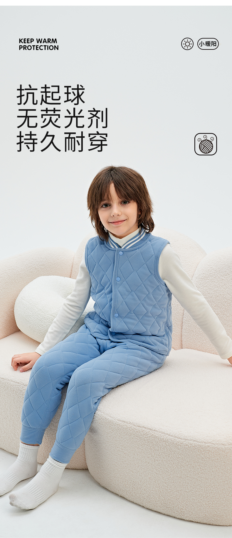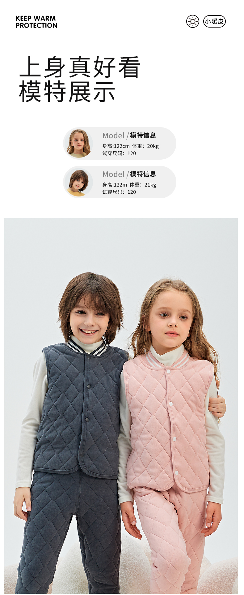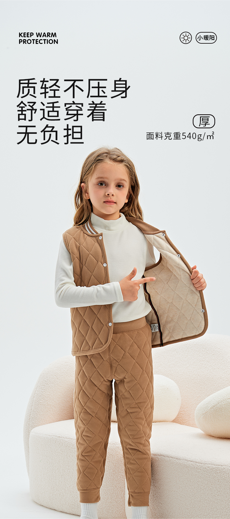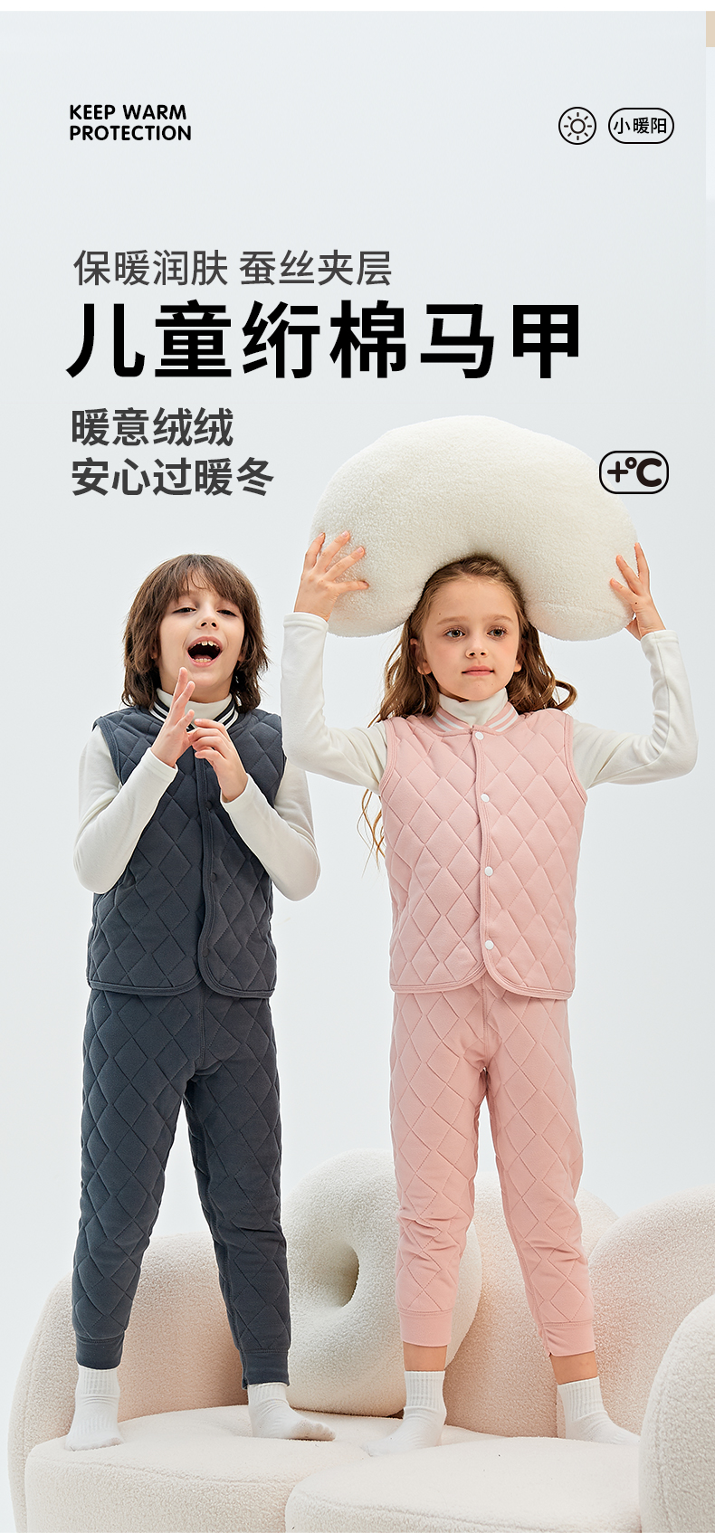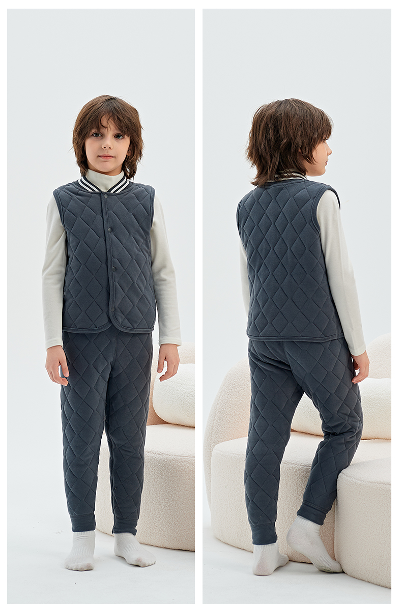 72小时内发货【秋冬校服神器】儿童羊绒蚕丝保暖套装 马甲/上衣/裤子 A类面料 5维质检 羊绒蚕丝内里 保暖舒适 温暖过冬