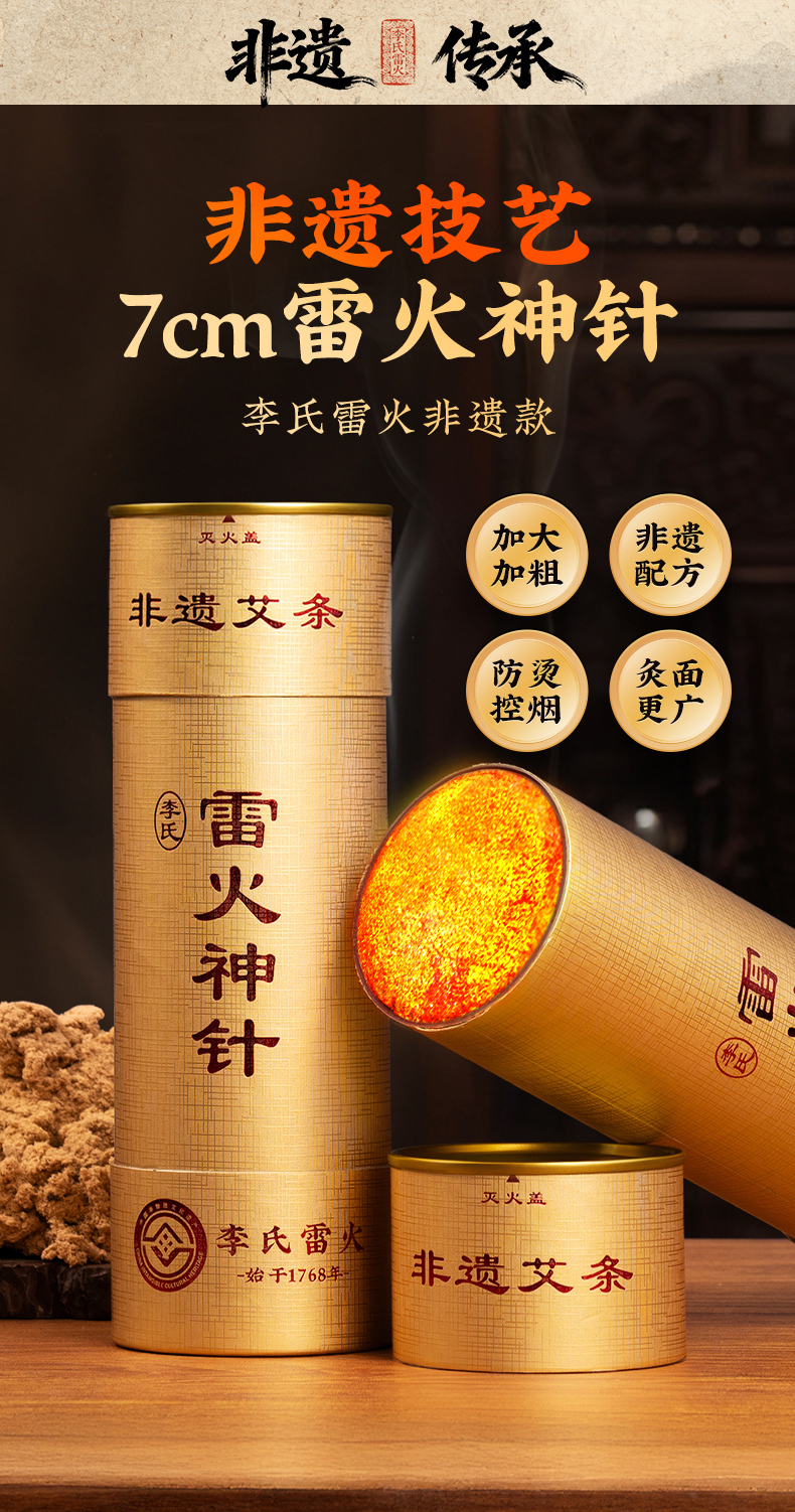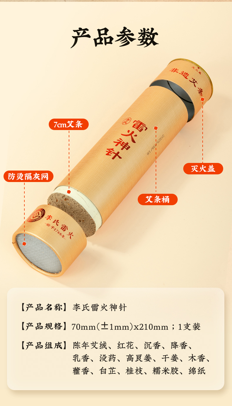 【到手6支】直径7cm 非遗加药雷火神针 自带隔灰网,灭火盖