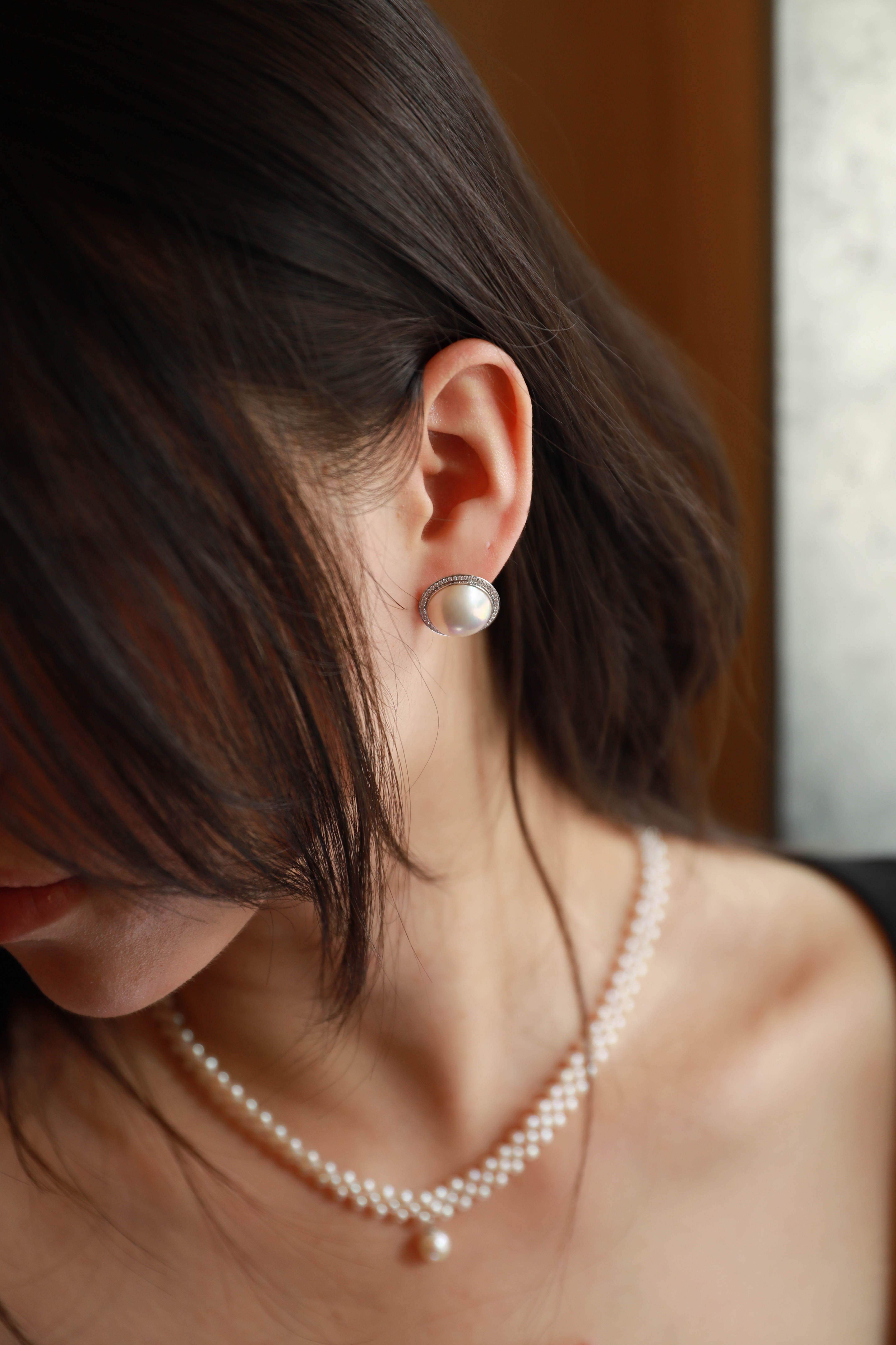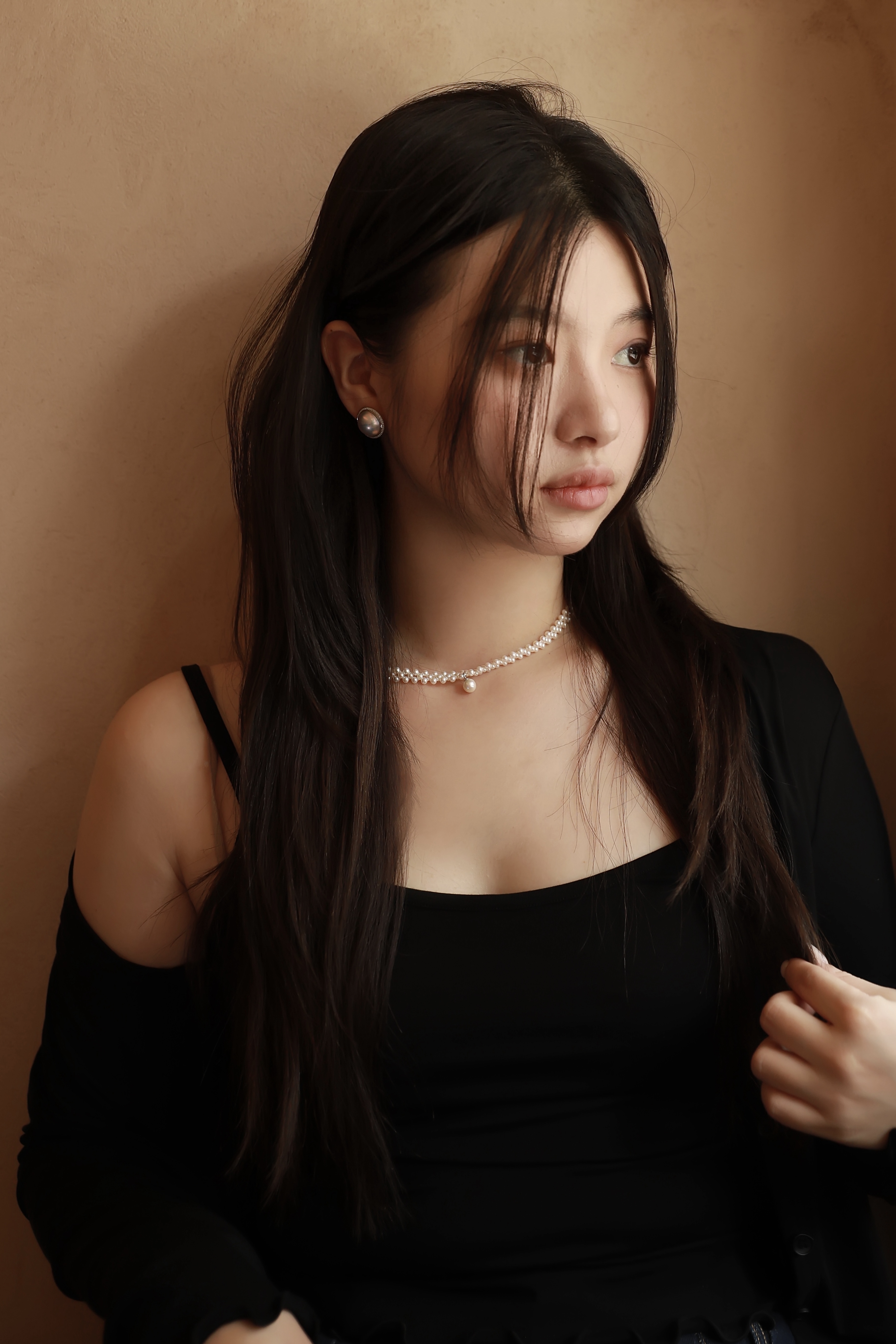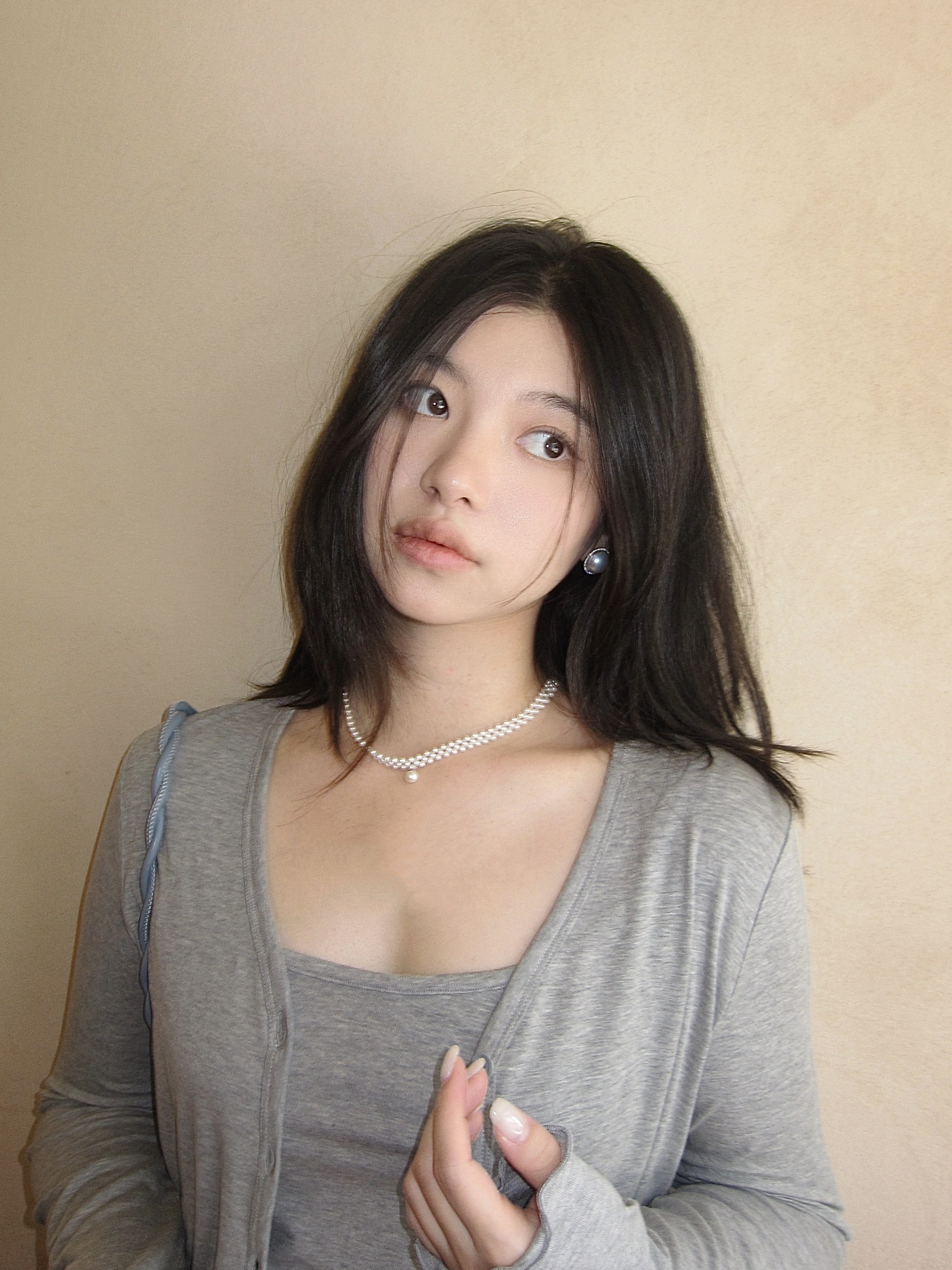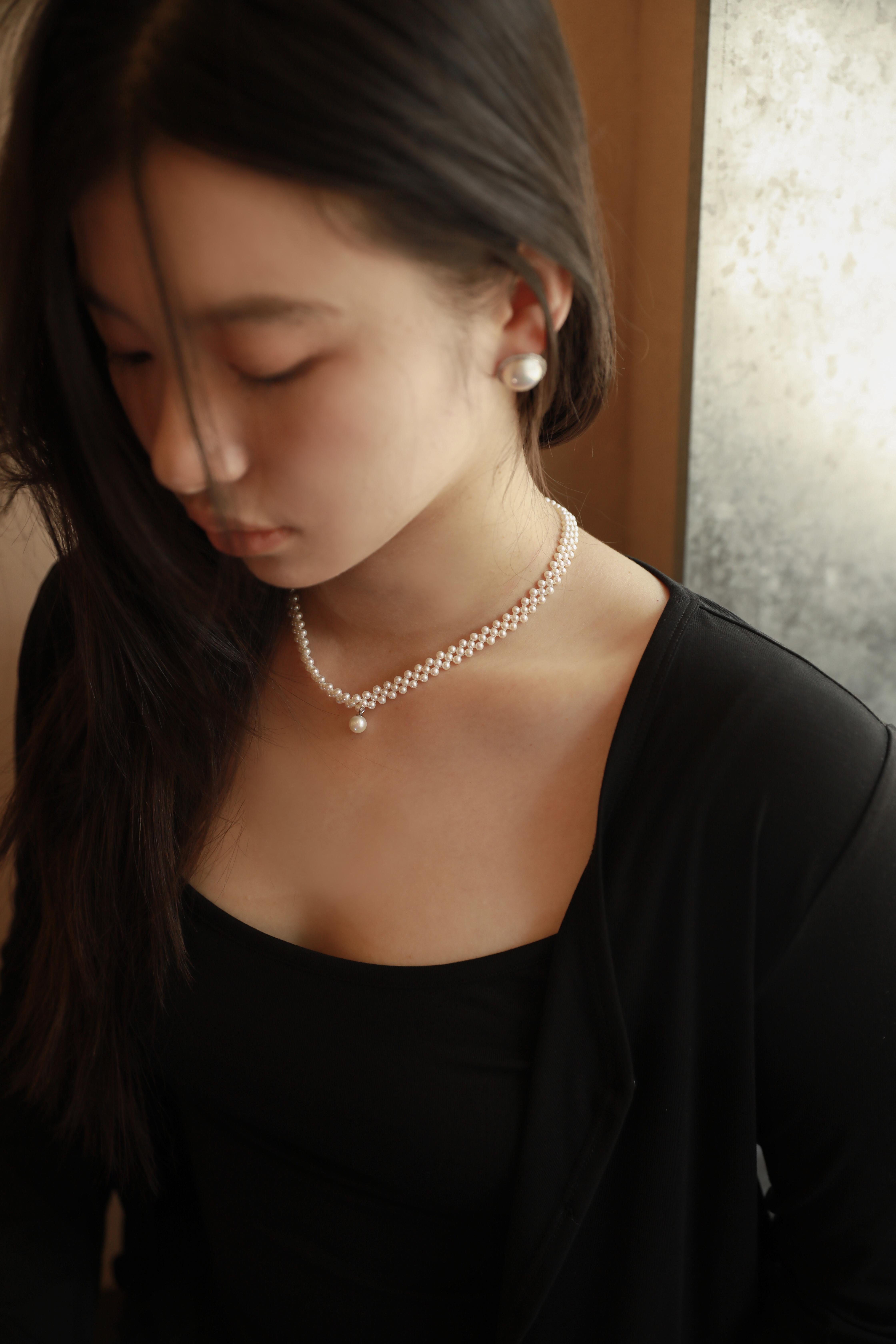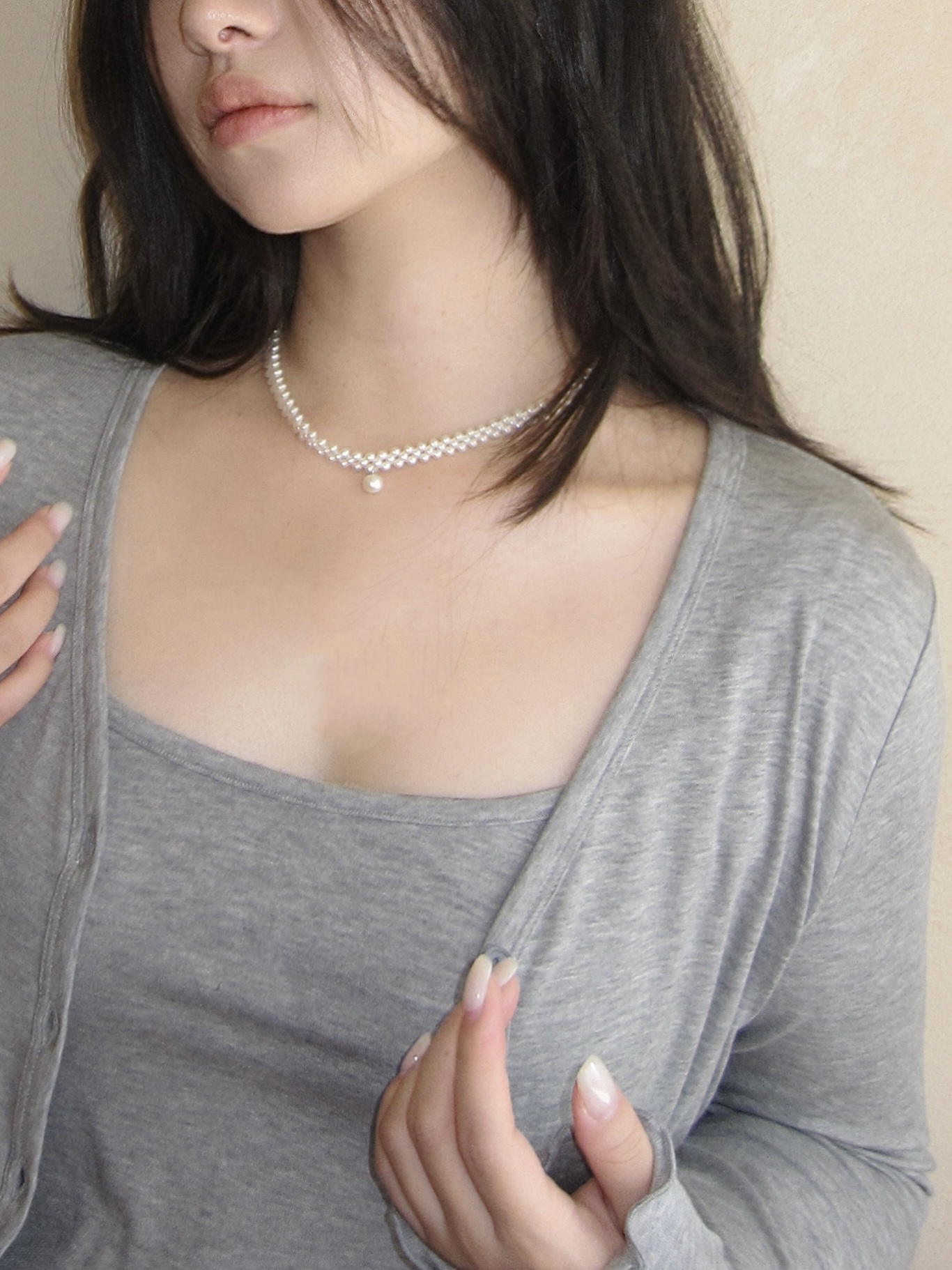 三层编织,中间坠一粒圆珠铃铛🔔,40cm长度+5cm可调节部分,穿搭好物,每一粒都是天然淡水珍珠。