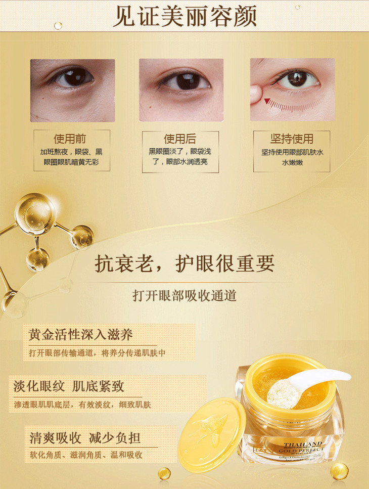 【限时秒杀】泰国进口UAU 24K黄金眼霜30ML 去黑眼圈 去眼袋 淡化细纹
