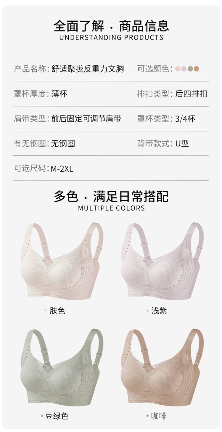 雅黛丽无痕内衣小胸薄款软支撑侧收提拉文胸收副乳防下垂美背胸罩