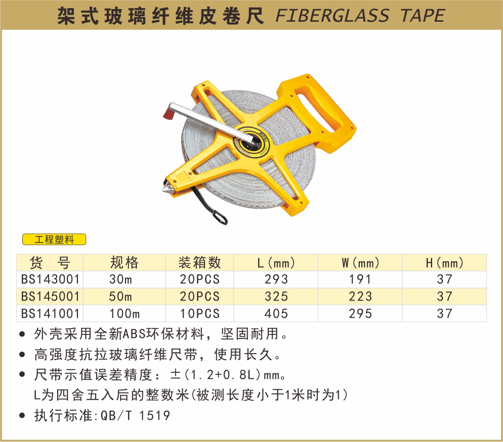 波斯架式玻纤皮尺BS-A5001 30m50m100m BS143001/BS145001/BS141001